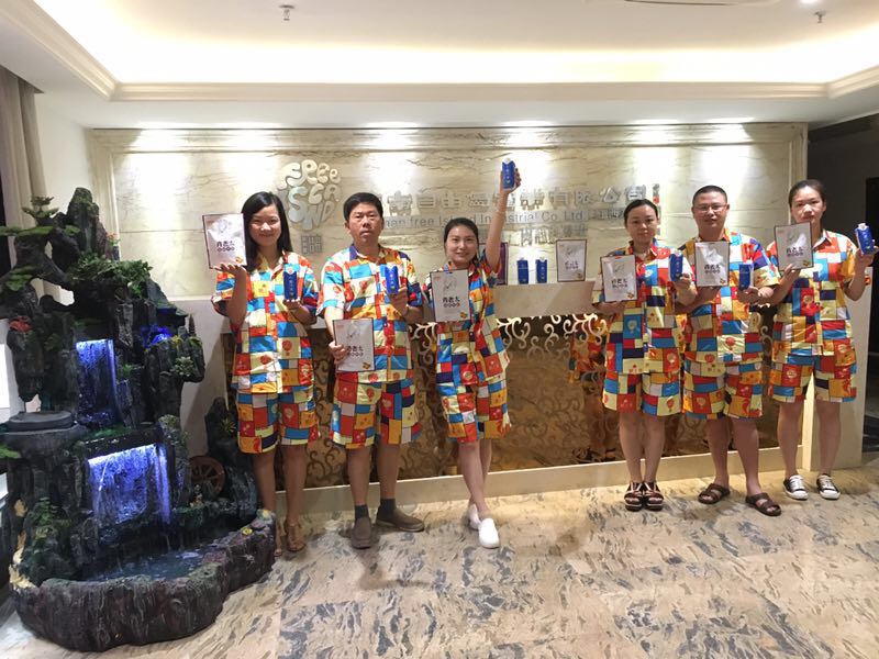 2017年7月19日一一21日,海南自由岛实业有限公司树上水、肖老太新品上市研讨会在南昌召开,董事长肖志军,总经理陈玉松,各片区、部门经理共14人参加了本次会议。
