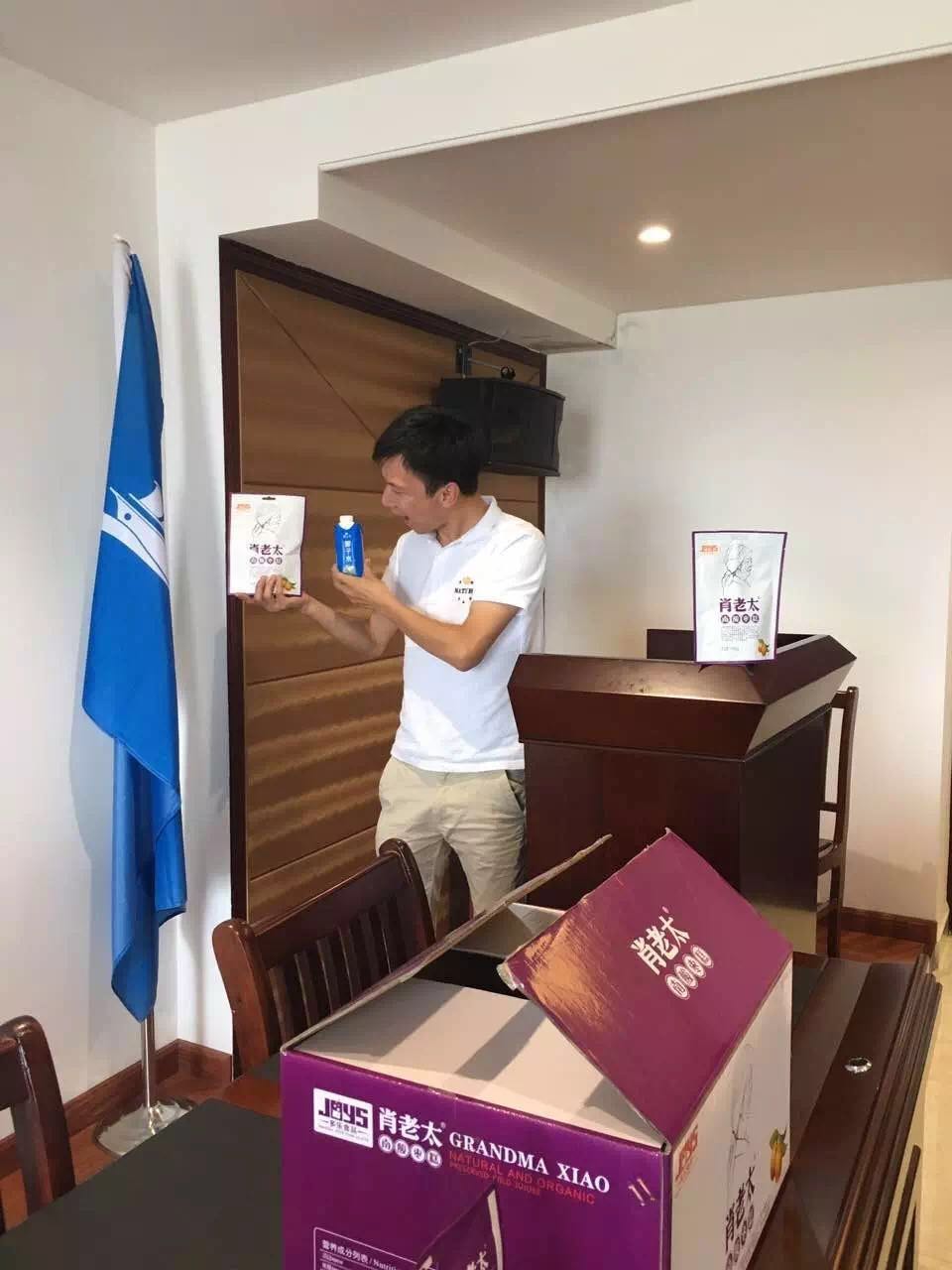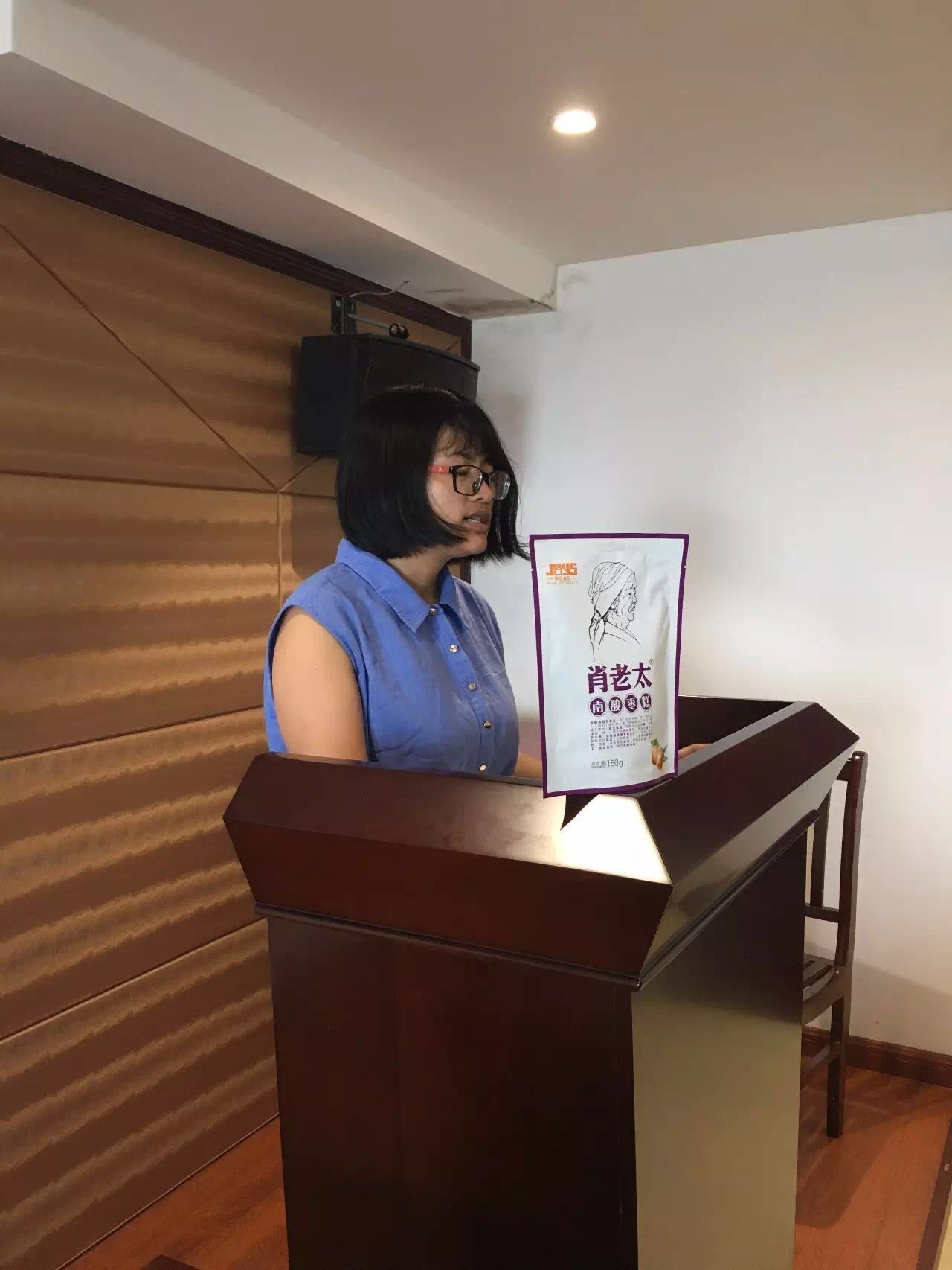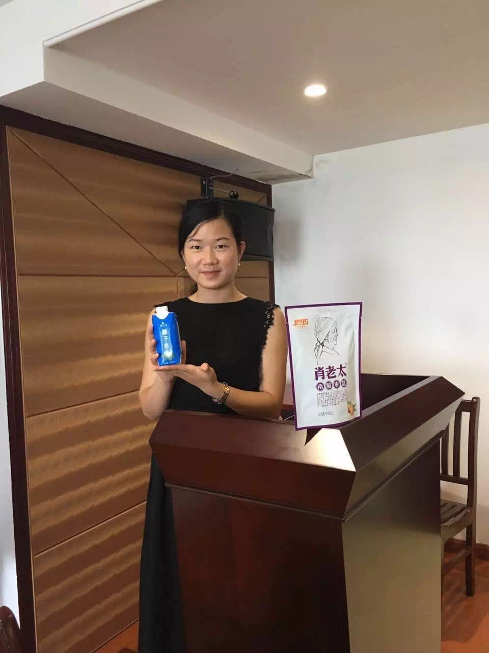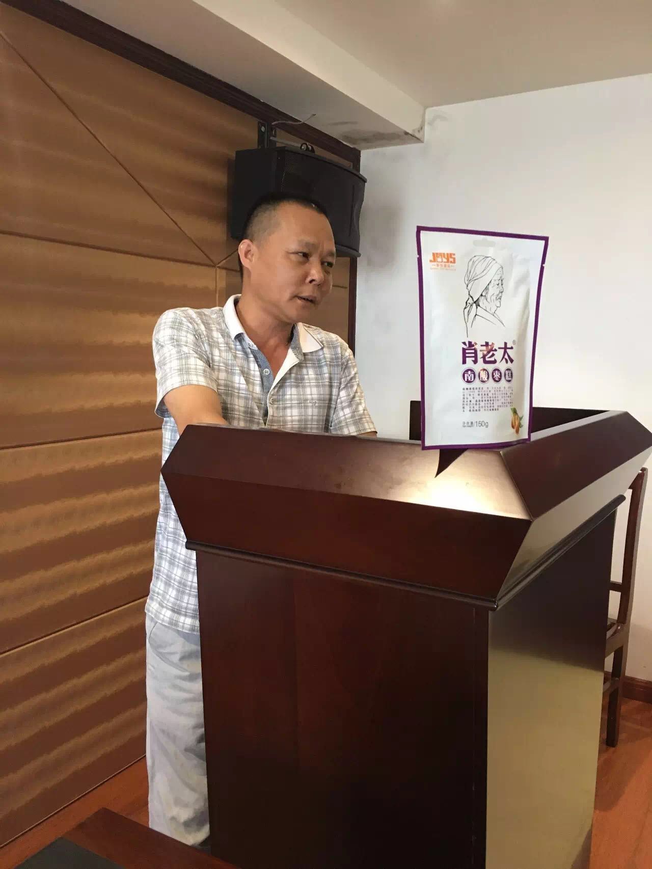 研讨会上,肖志军董事长对新产品“树上水·椰子水”和“肖老太南酸枣糕”做出简要介绍。