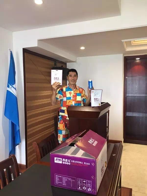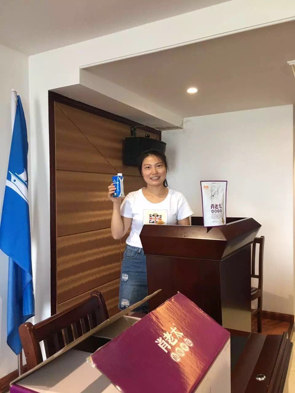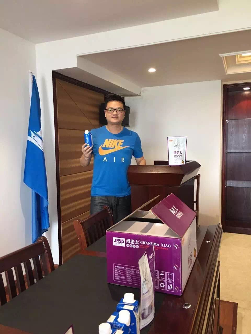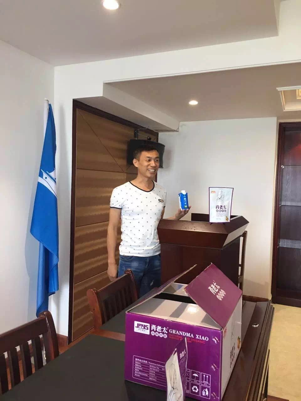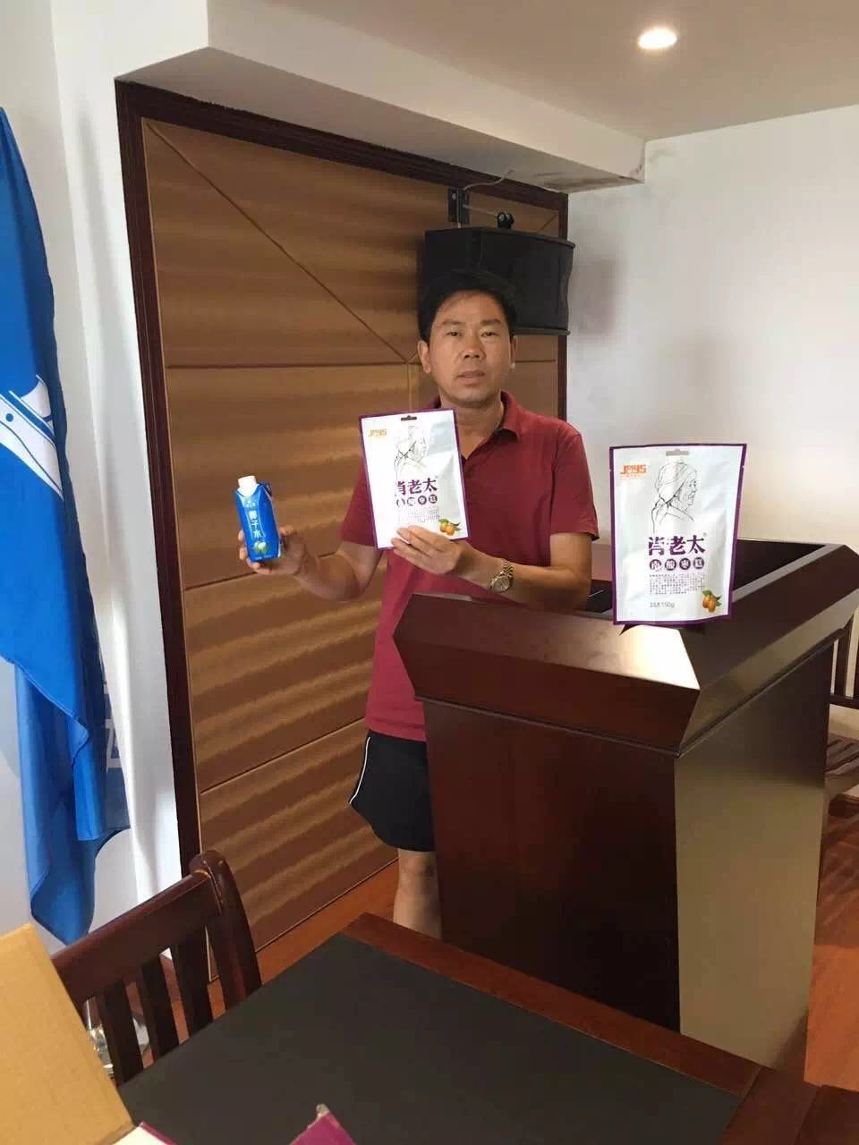 研讨会上,肖志军董事长对新产品“树上水·椰子水”和“肖老太南酸枣糕”做出简要介绍。