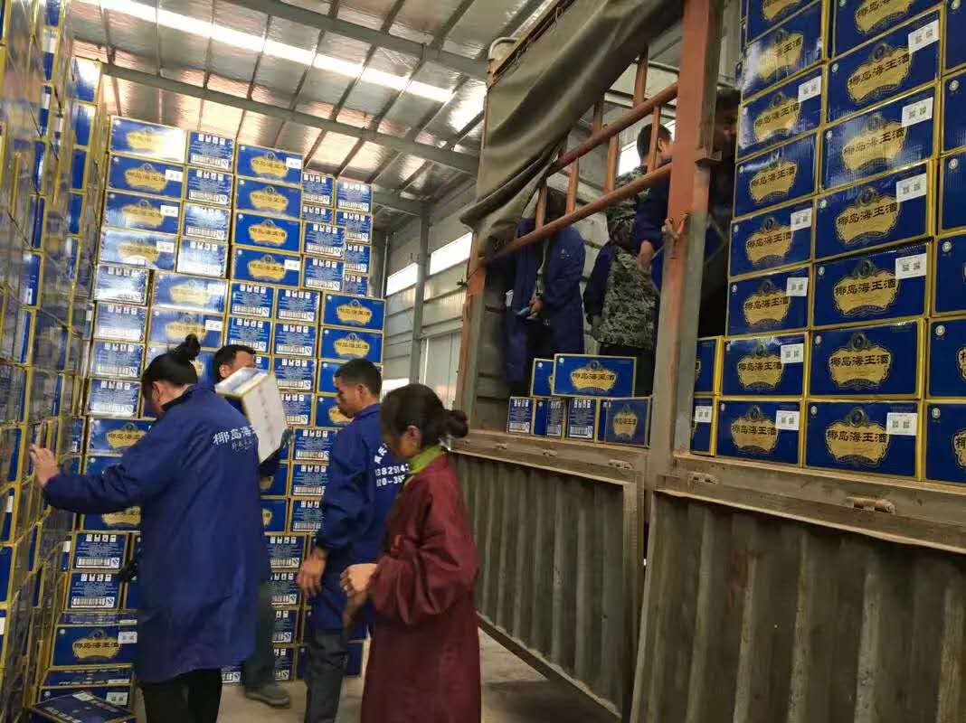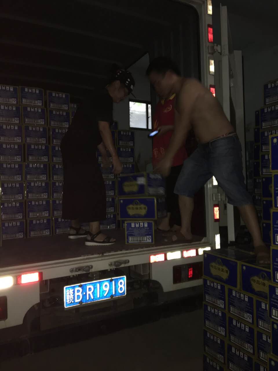 7月27日,赣州仓库通过物流,运输椰岛海王酒促销品发往赣州15个市、县的经销商。