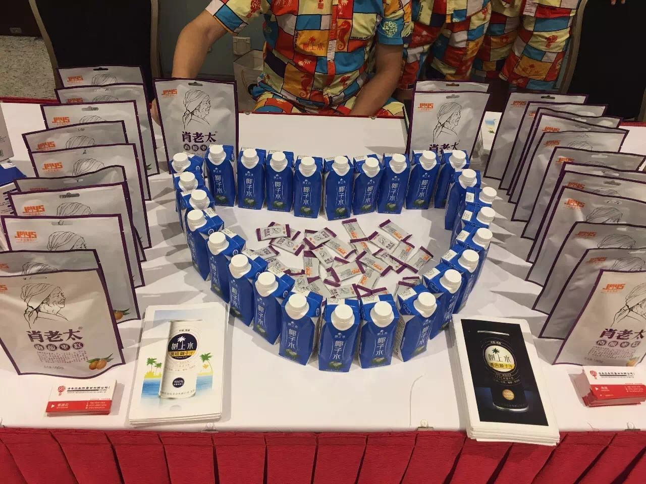 肖志军:我公司主要产品有树上水牌椰子汁、椰子水,肖老太牌南酸枣糕。海南盛产椰子,用椰子加工的产品很多,但是,树上水只有一个。尤其是“树上水”椰子水,百分之百纯天然椰子水,配料只有椰子水,不添加任何物质。