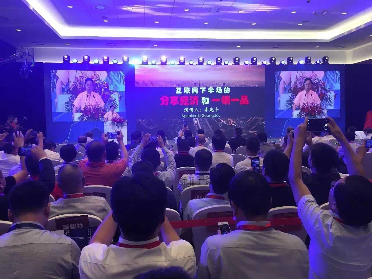 著名品牌战略专家李光斗现场演讲《互联网下半场的分享经济和一镇一品》。李光斗,毕业于复旦大学新闻学院,中央电视台品牌顾问,品牌竞争力学派创始人。