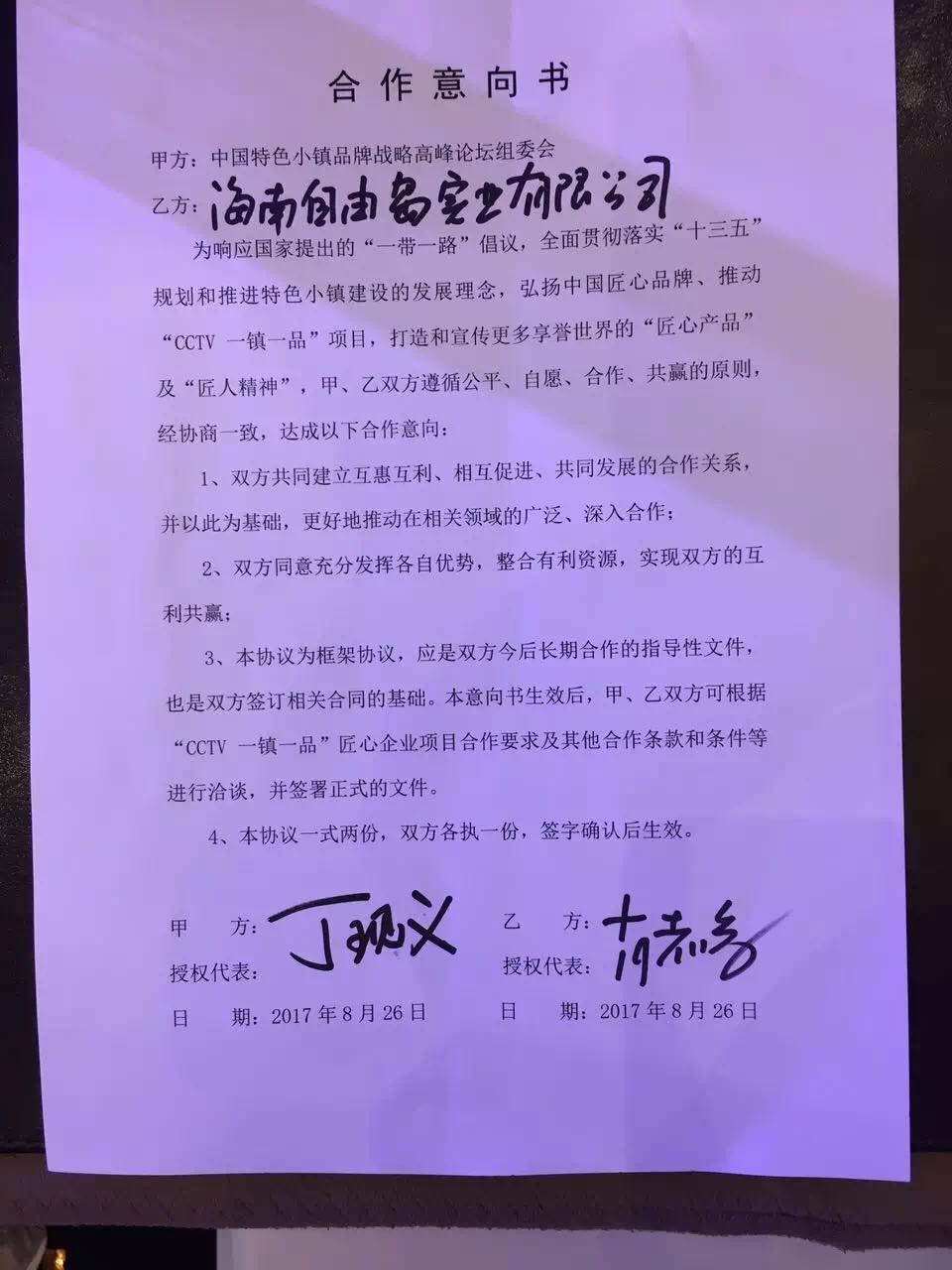 热烈祝贺自由岛树上水入选中国特色小镇品牌战略高峰论坛暨“CCTV一镇一品”项目启动仪式现场意向签约百家品牌!