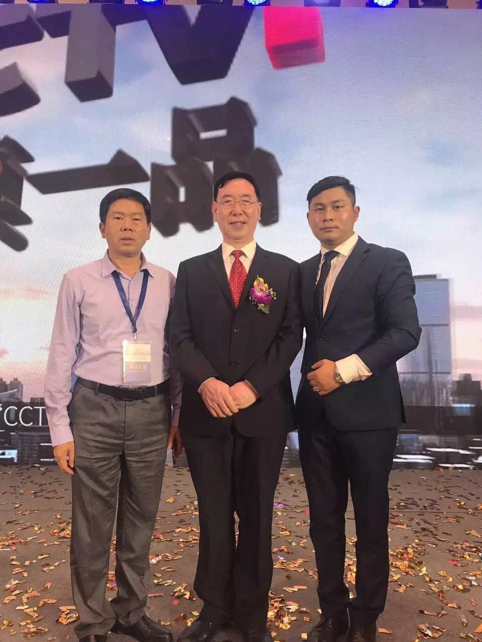 海南自由岛实业有限公司董事长肖志军先生(右)与央视网商城品牌主任丁现义先生(左)合影。