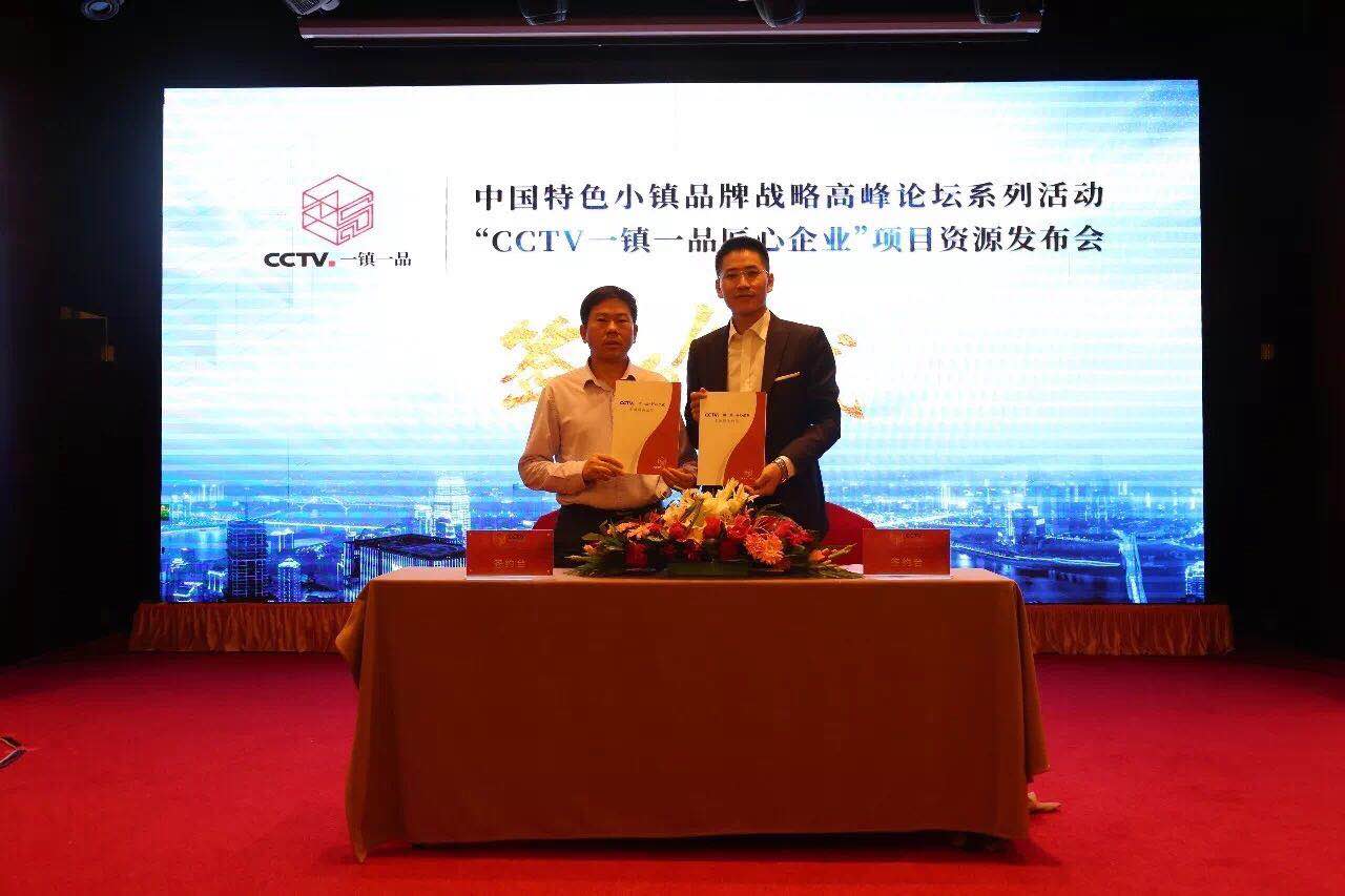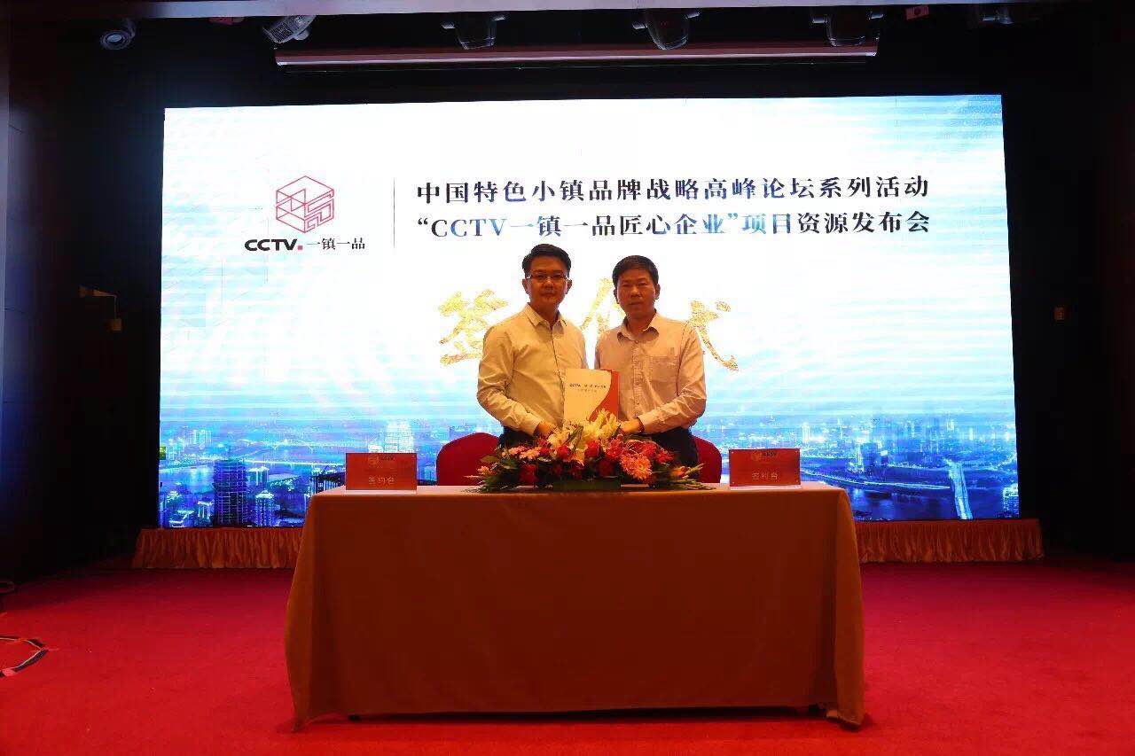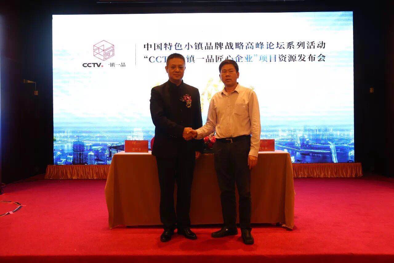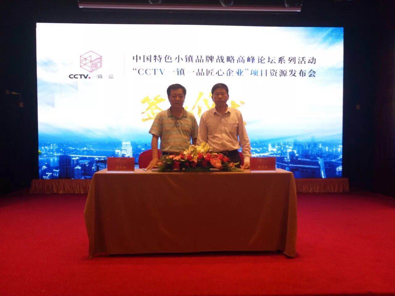 肖志军先生与“CCTV一镇一品”’项目运营中心品牌总监王森先生签署《“CCTV一镇一品”广告协议》。