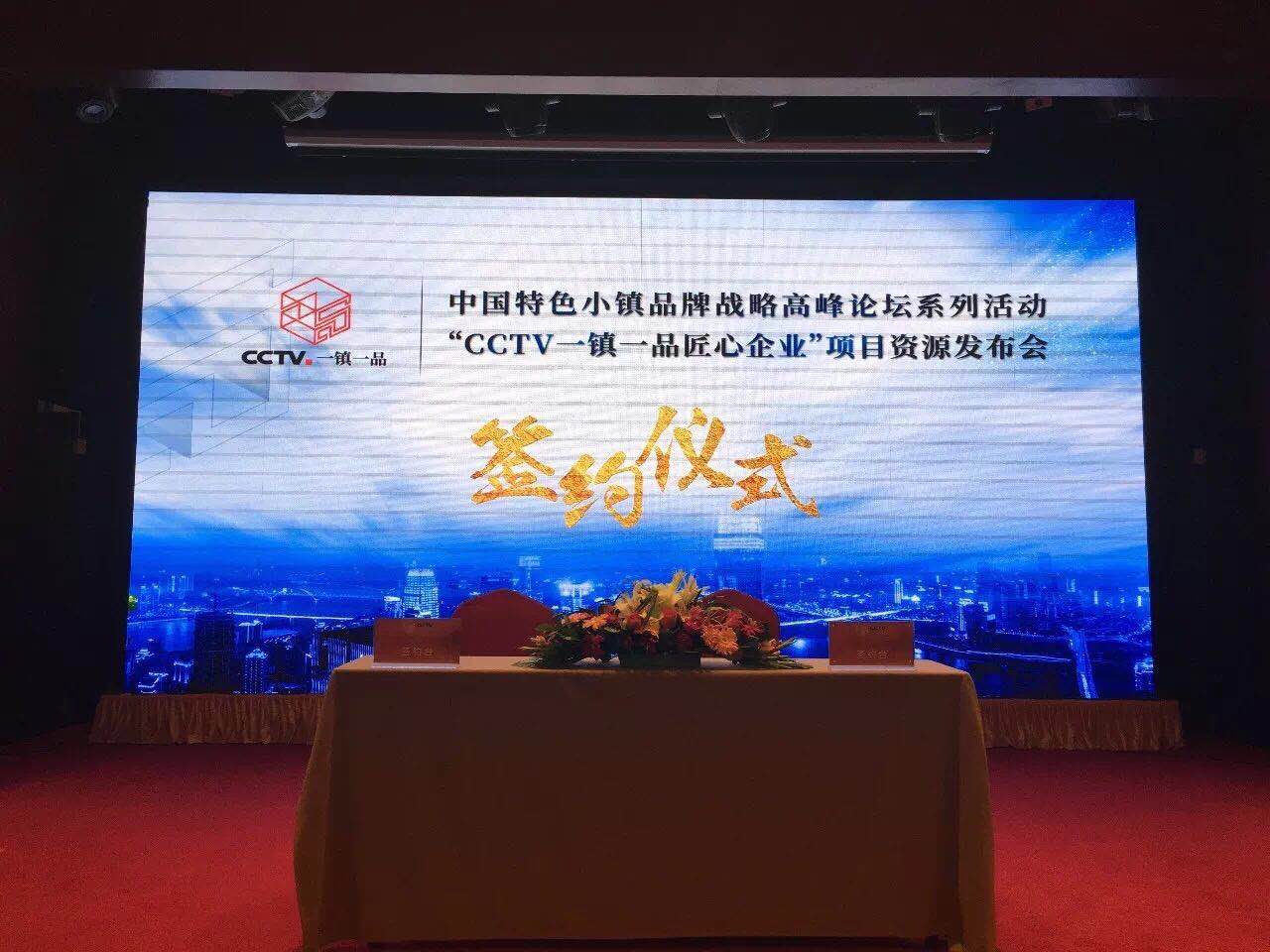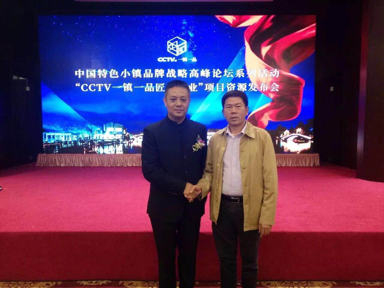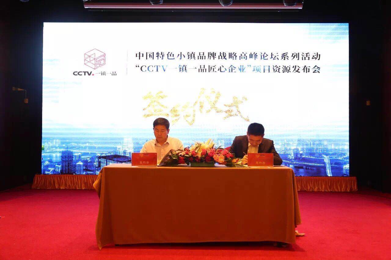 肖志军先生与“CCTV一镇一品”’项目运营中心品牌总监王森先生签署《“CCTV一镇一品”广告协议》。