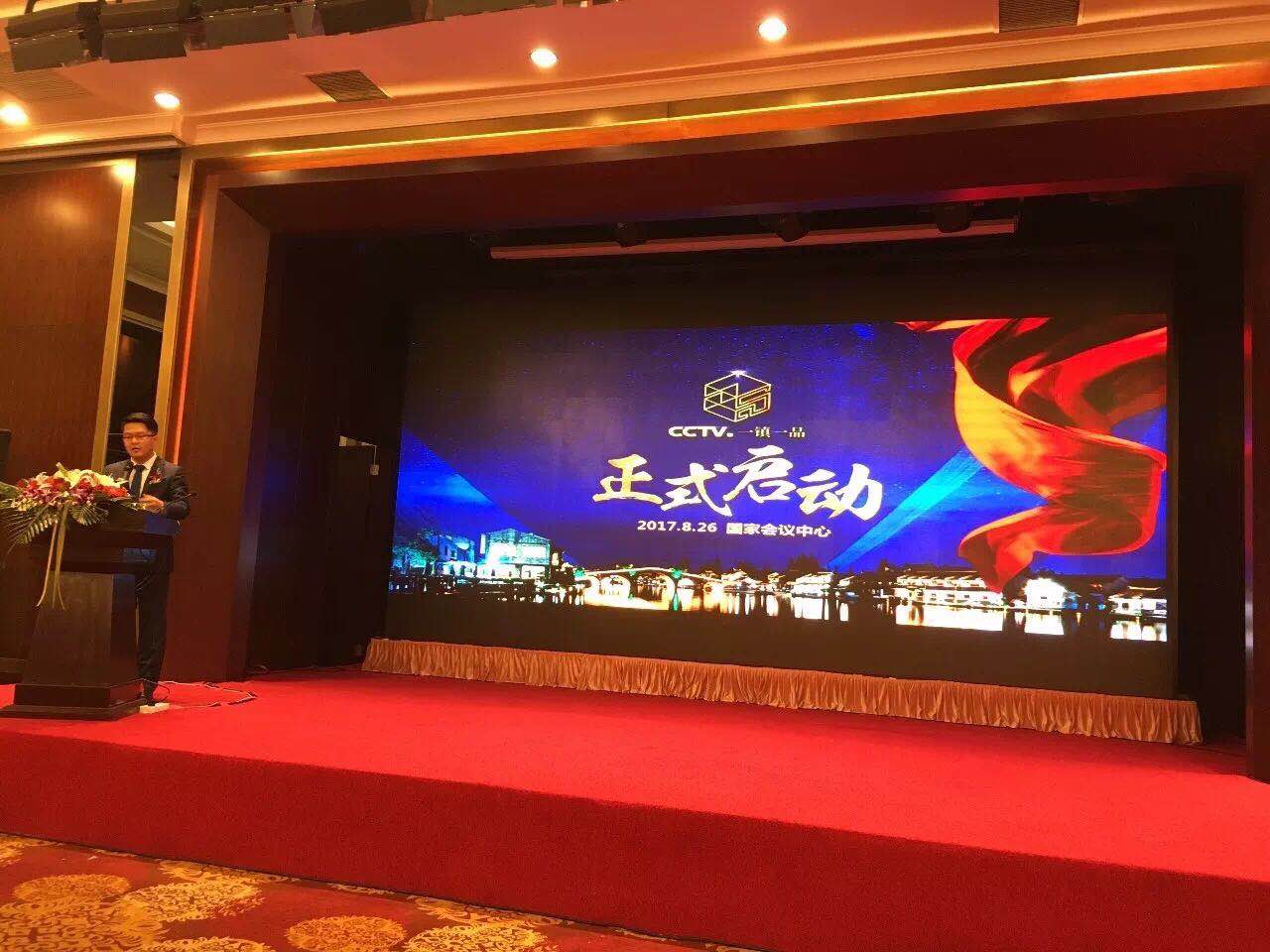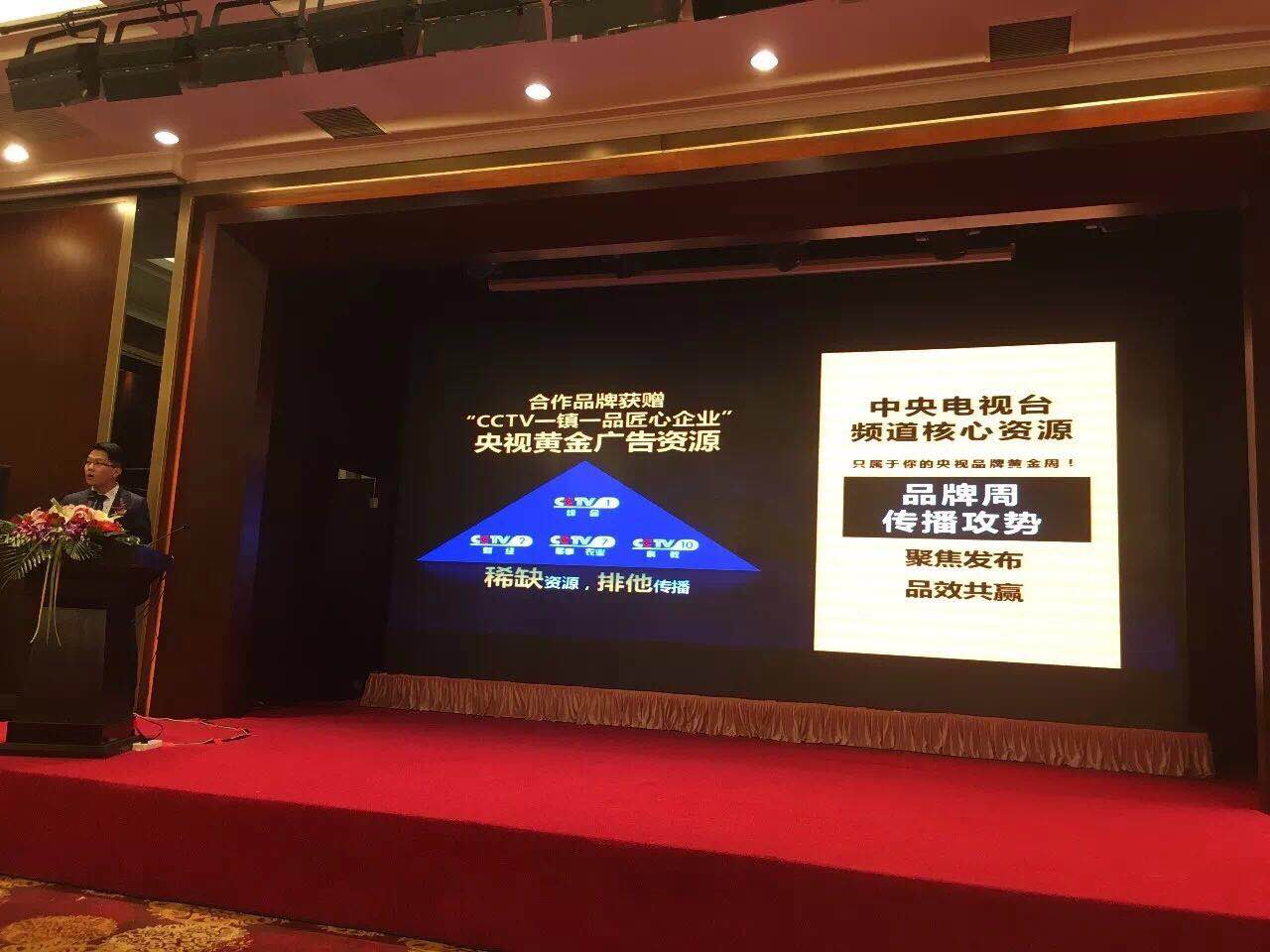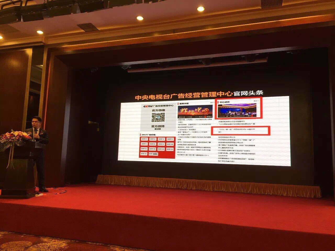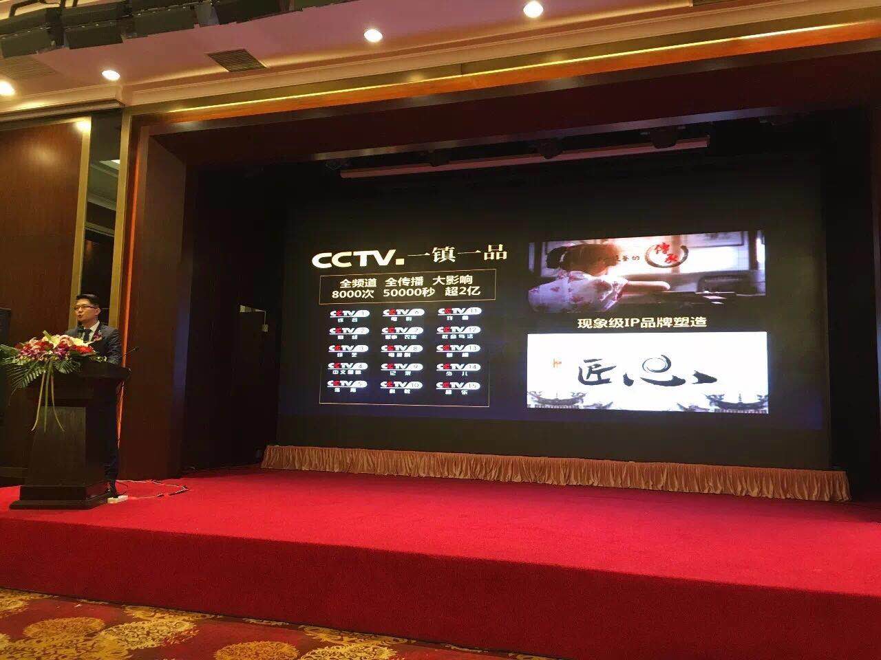 肖志军先生与“CCTV一镇一品”’项目运营中心品牌总监王森先生签署《“CCTV一镇一品”广告协议》。