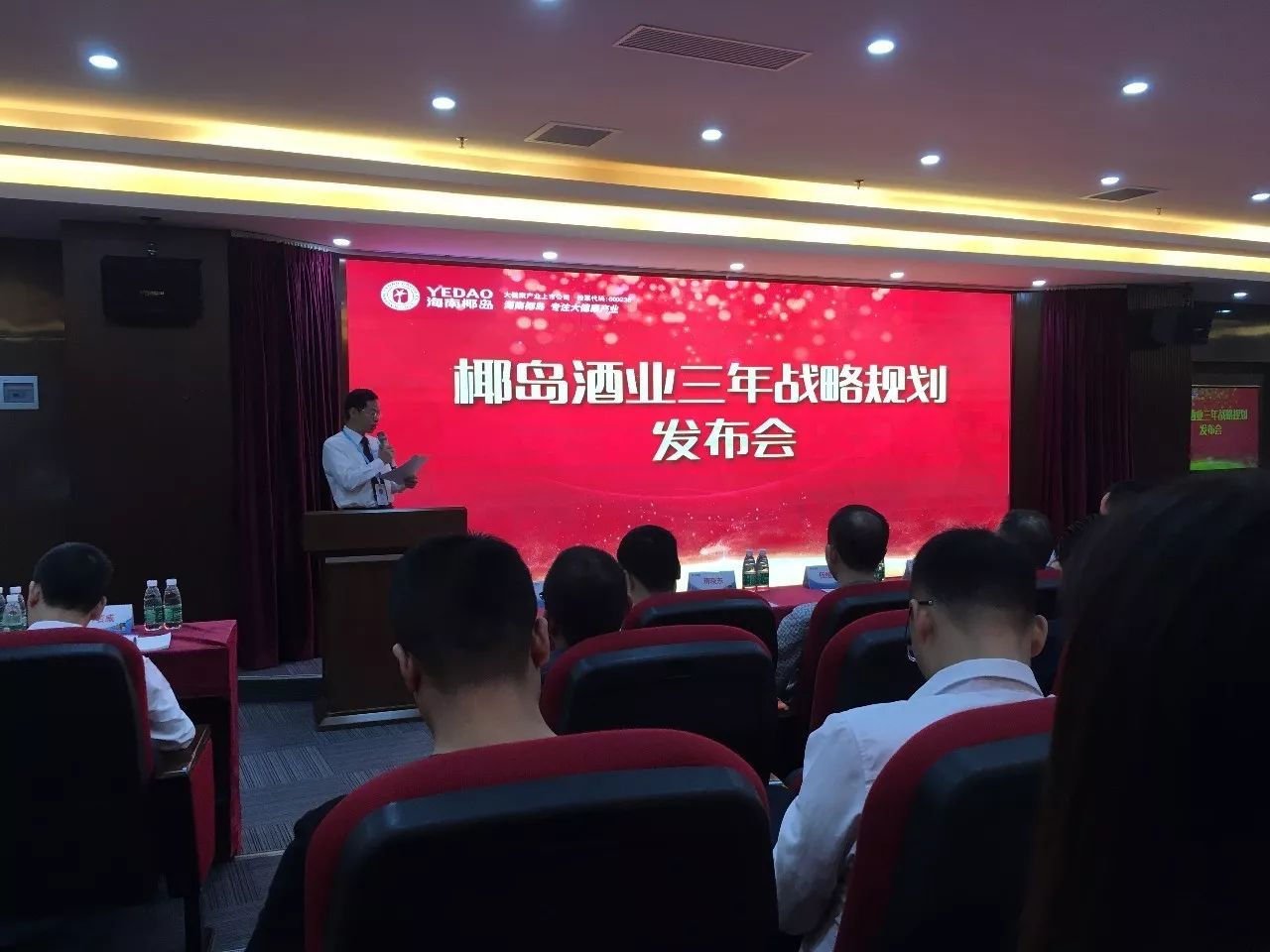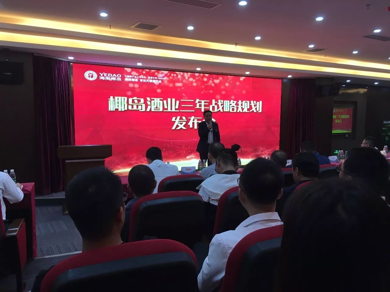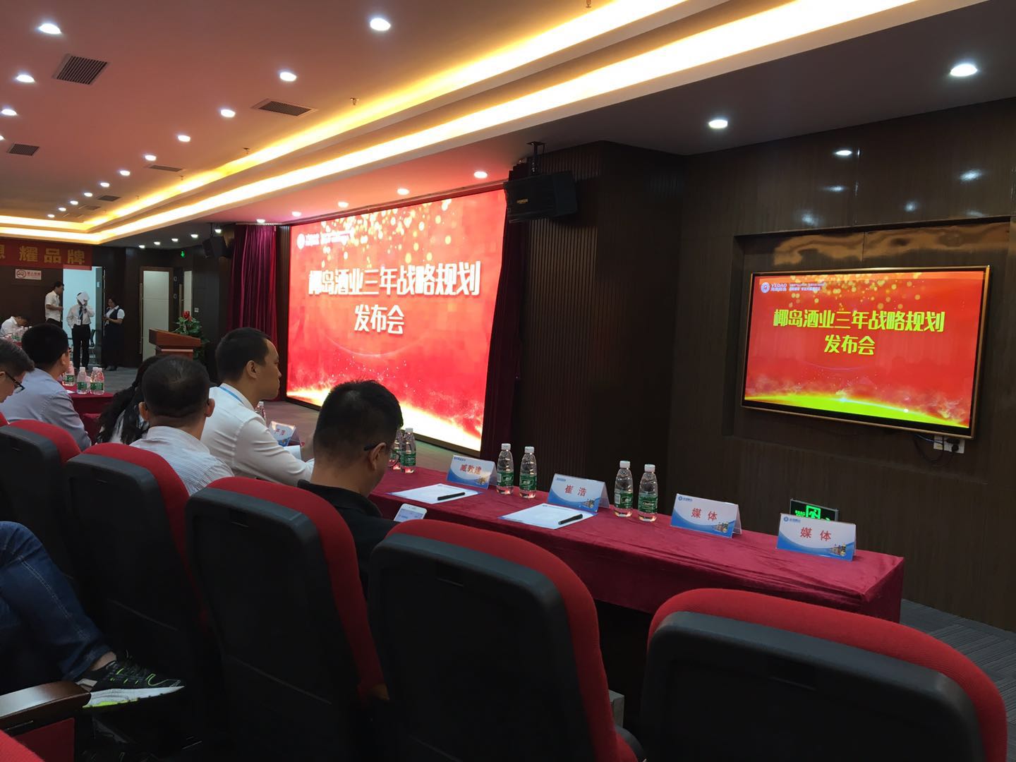 剪彩仪式及开业庆典活动之后,嘉宾前往二楼会议室参加海南椰岛酒业三年战略规划发布会。