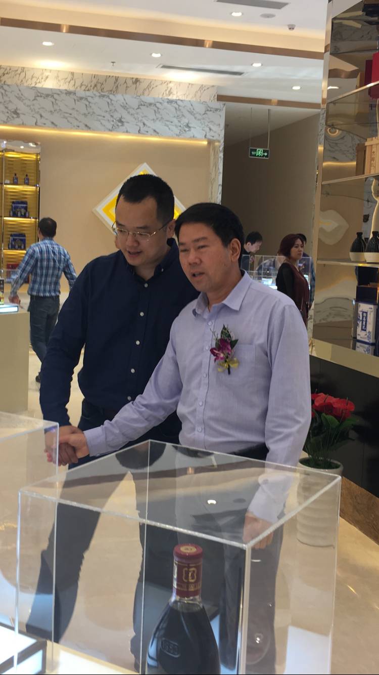 海南椰岛集团常务副总、酒业公司董事长曲峰(左)与肖志军先生参观展厅