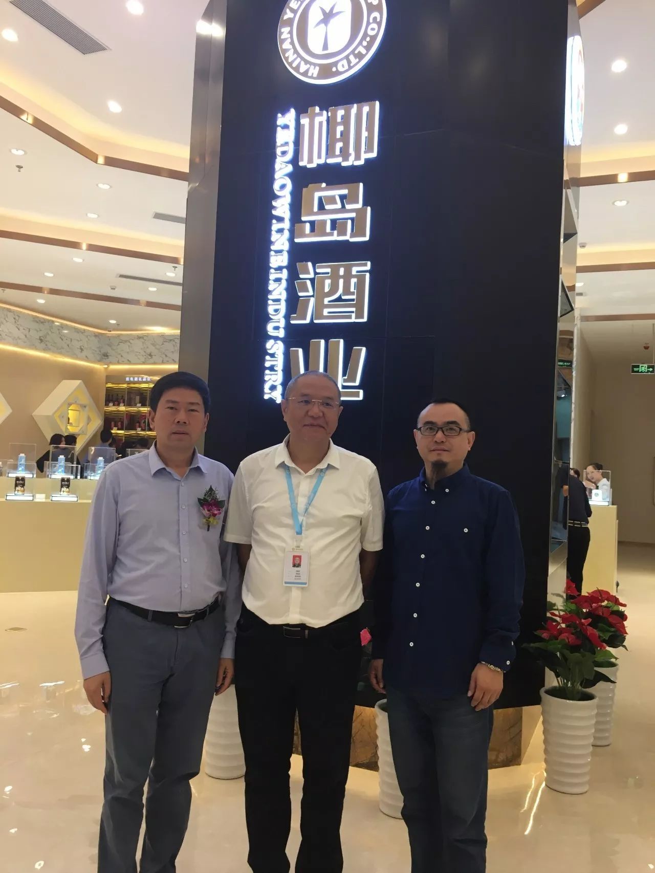 肖志军先生(左)、黄勇先生(右)和海南椰岛酒业公司副总经理杨嘉平合影