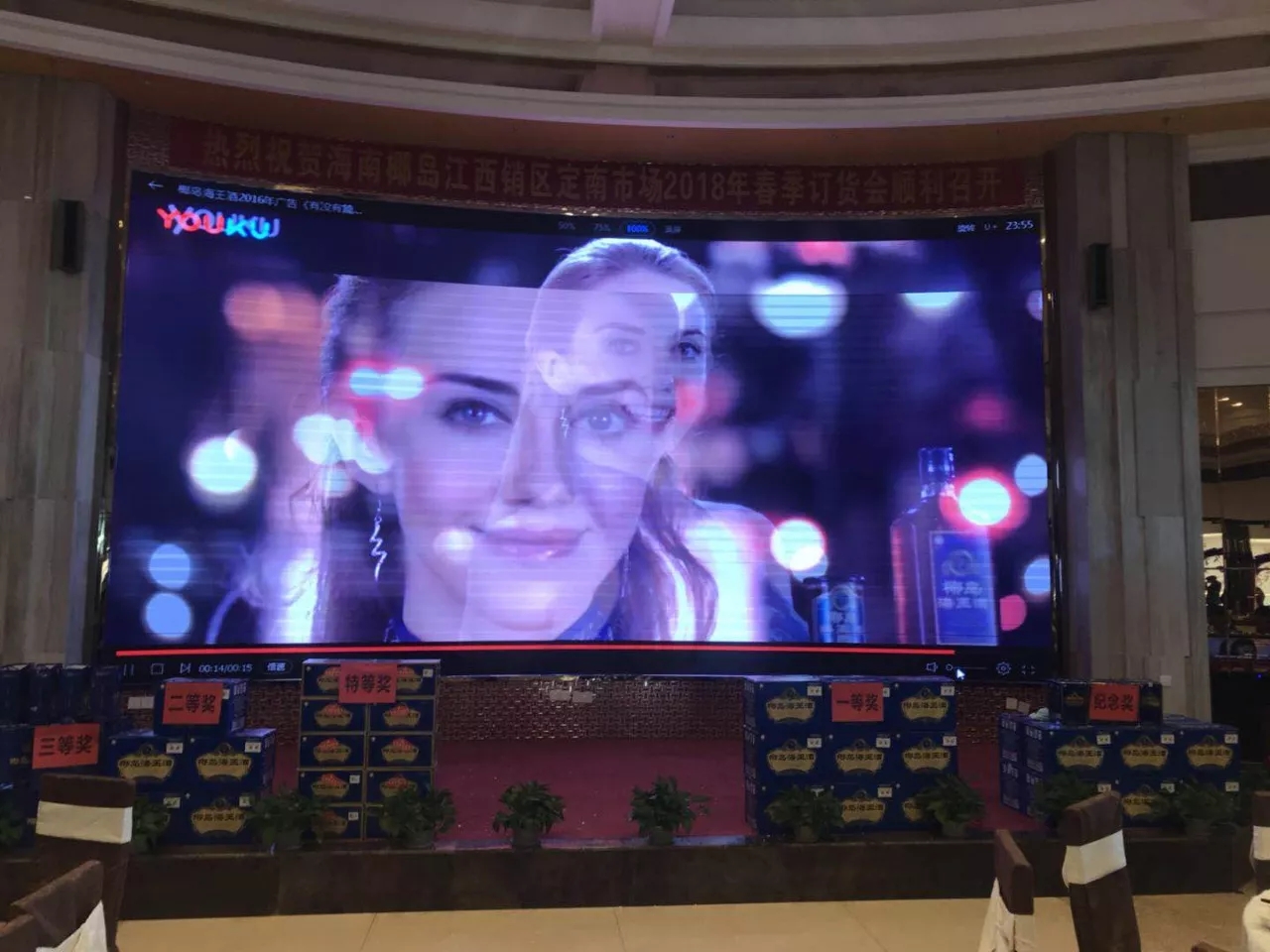 十一点半,客户开始陆续入场。酒店大屏幕开始滚动播放椰岛海王酒的广告。