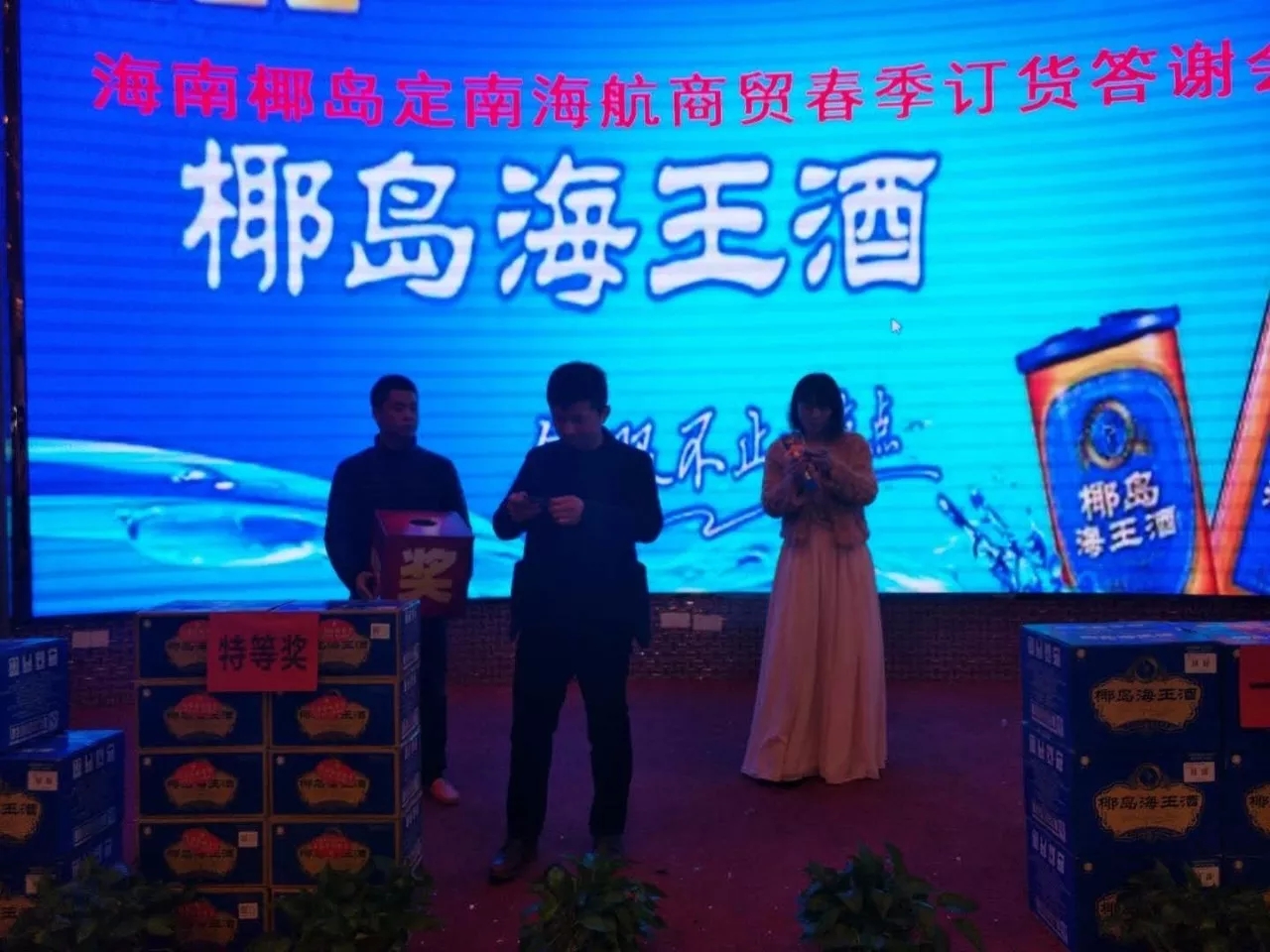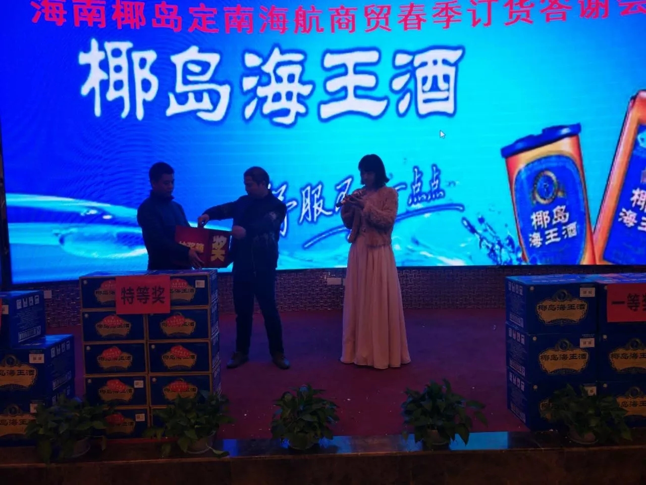 答题结束后,开始最激动人心的抽奖环节。本次订货会特设特等奖1名,奖品为10件杯装海王酒;一等奖3名,奖品为3件500ml盒装海王酒;二等奖5名,奖品为1件500ml盒装海王酒;三等奖30名,奖品为两盒500ml盒装海王酒;纪念奖100名,每人1盒盒装海王酒。