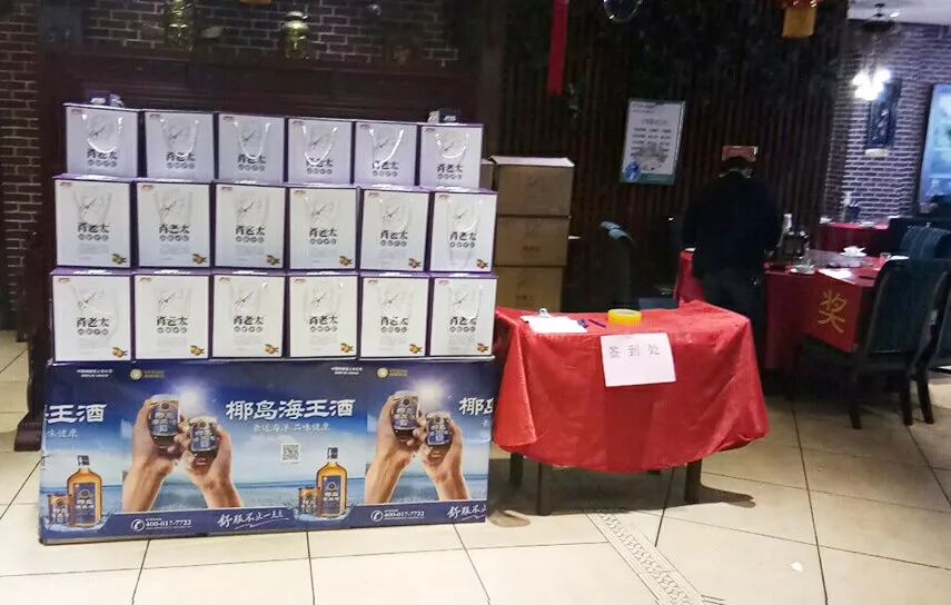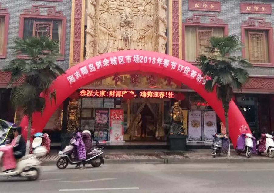 张苏云手记:2018年1月24日,天下着雨,寒风凛冽。早上8点,我开始安排这次订货答谢会。虽然新余片区以前也办过答谢会,但是,由我亲手安排的还是第一次。为了让所有的核心经销商和渠道商能够体验到我们这个大家庭的温暖,我想了好多主意和方案,请教过许多有经验的人士,心想一定要把这次活动办好。为此,订了新余有名的酒家,请了歌手、舞者,研究了我们新余人喜欢吃什么菜,等等。我所做的一切的一切,就是想让客户有种吃年饭的感觉,有家的感觉,让客户知道我们公司感恩于他们,感谢他们多年来对公司的大力支持!(上图:海南椰岛新余片区城区市场春节订货答谢会彩虹门)