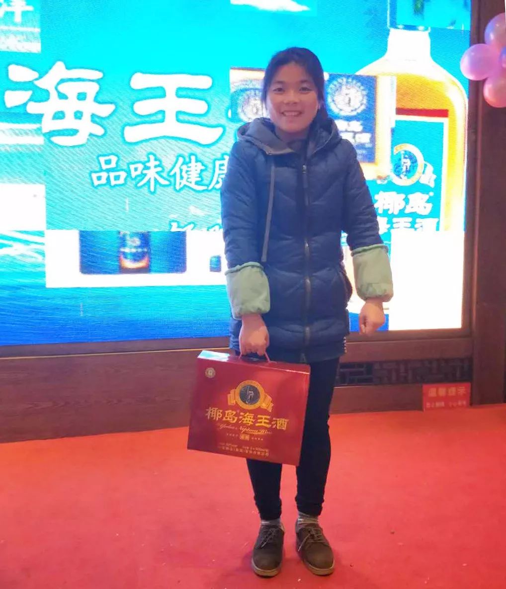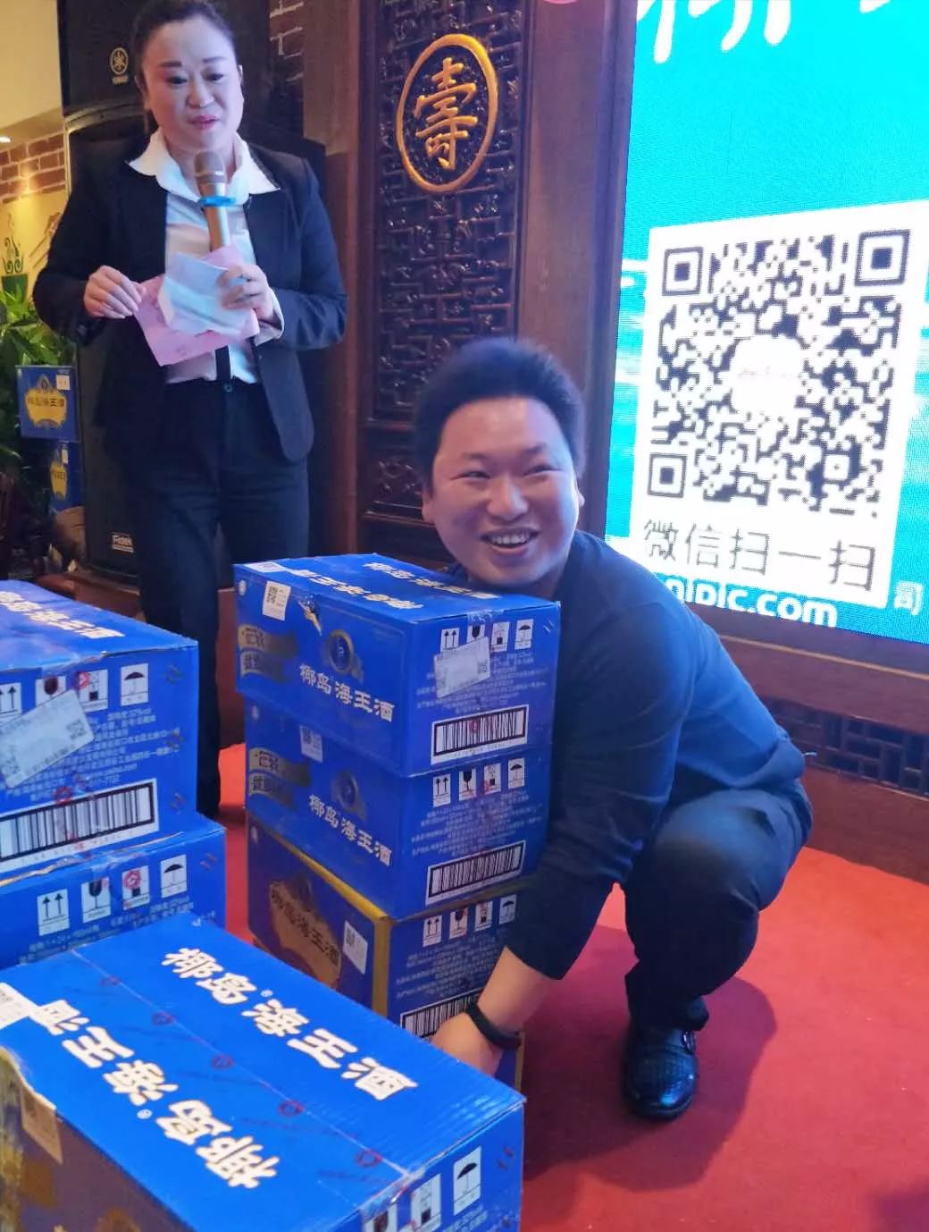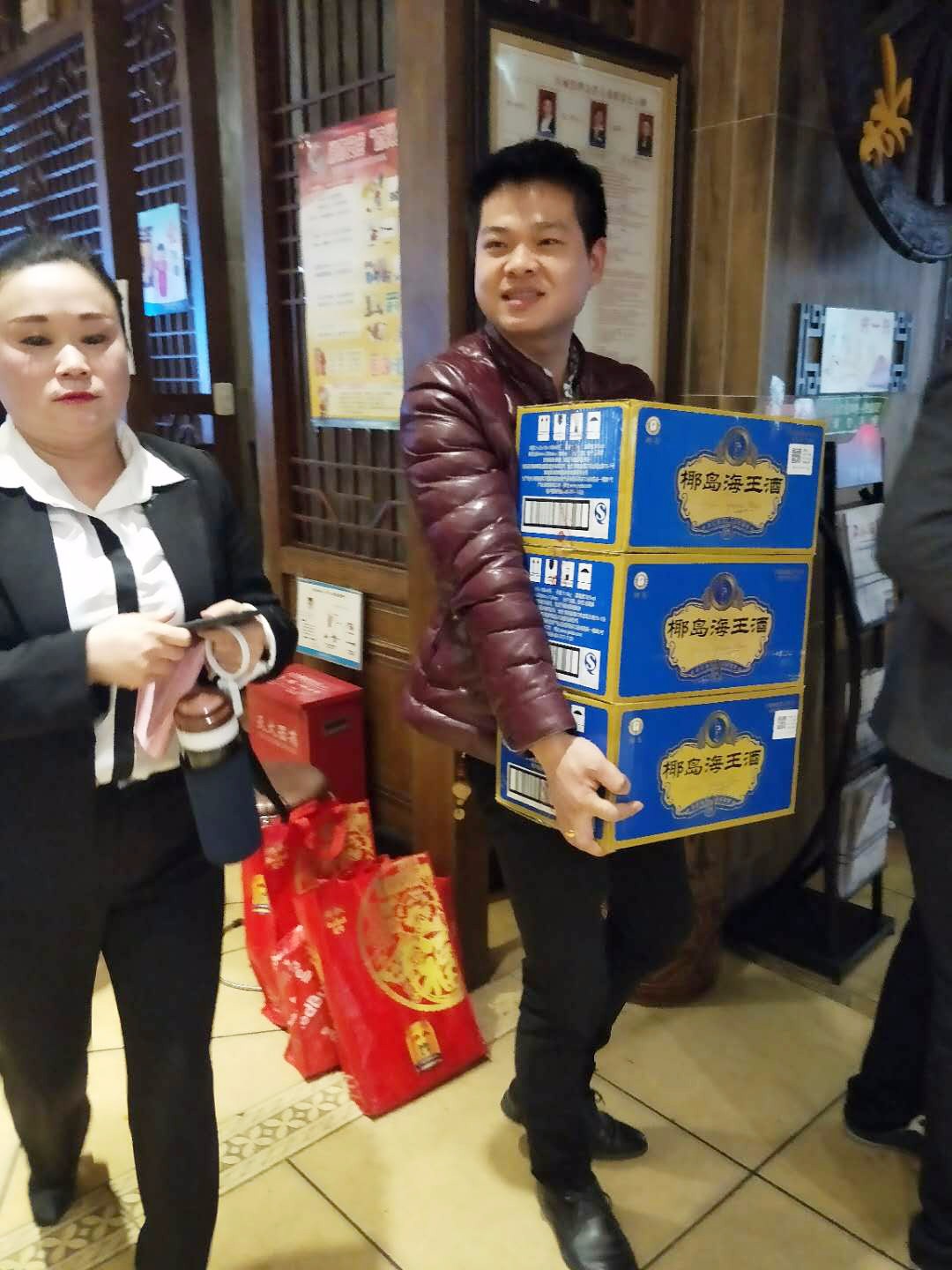 张苏云(左)和喜获一等奖的客户豪饮椰岛海王酒。