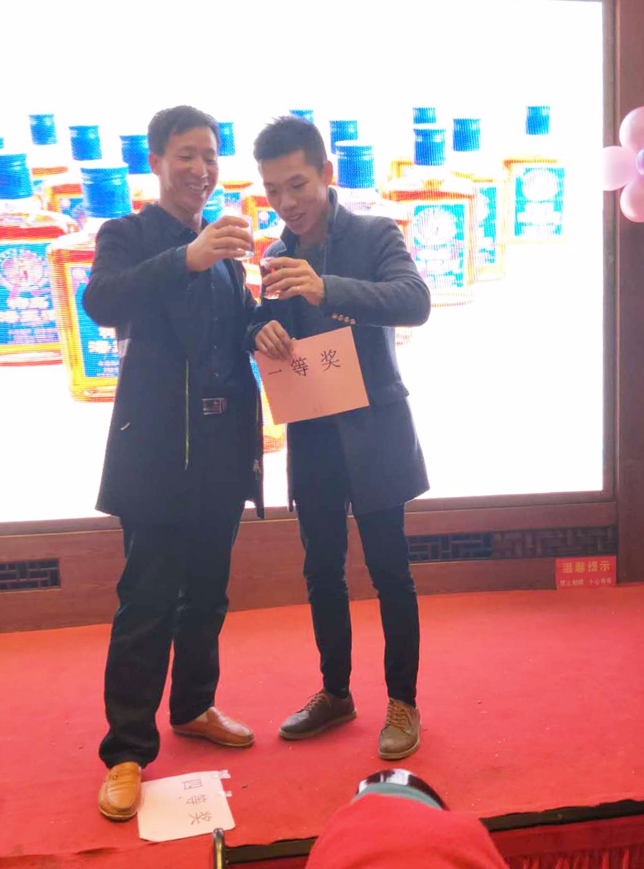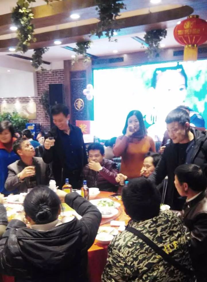 席间,张苏云,经销商闵国强、周小林向每桌客户敬酒。