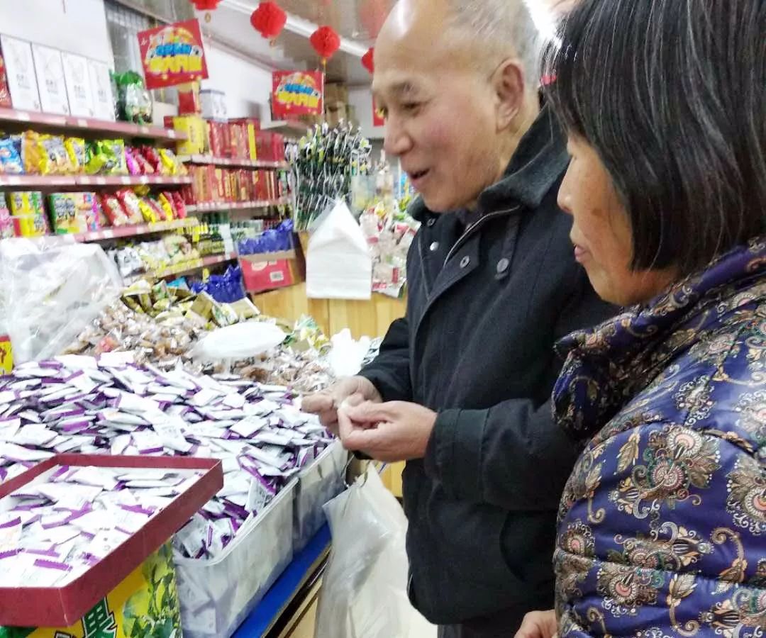 小曾购物超市里的肖老太南酸枣糕倍受老年朋友欢迎。