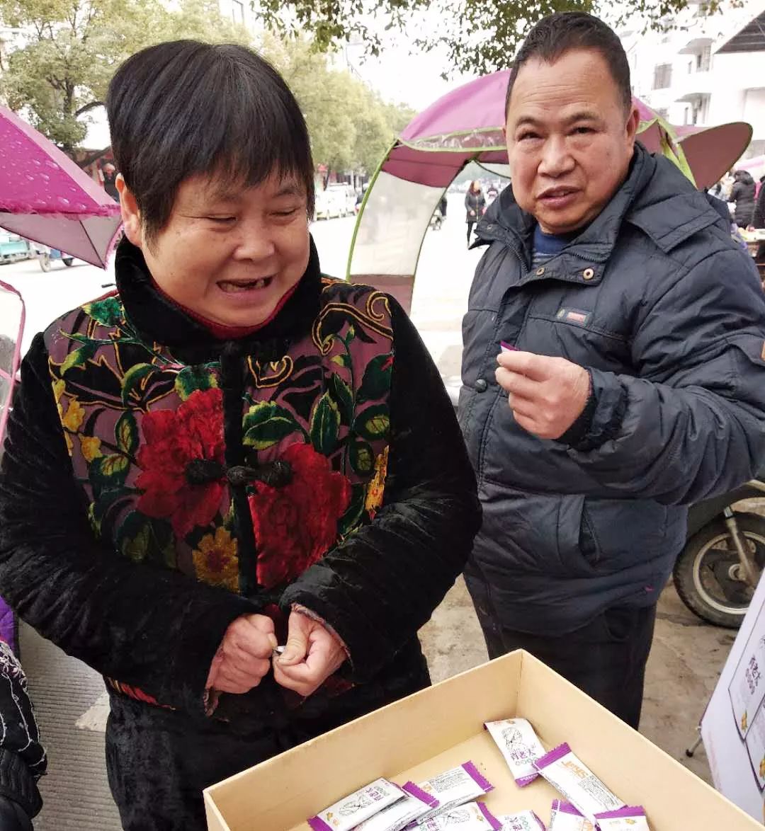 2018年2月6日,泰和市场部团队在泰和县文田镇菜市场门口做圩镇活动推广。肖老太南酸枣糕、树上水椰子水等品质新品吸引人们纷纷驻足品尝。