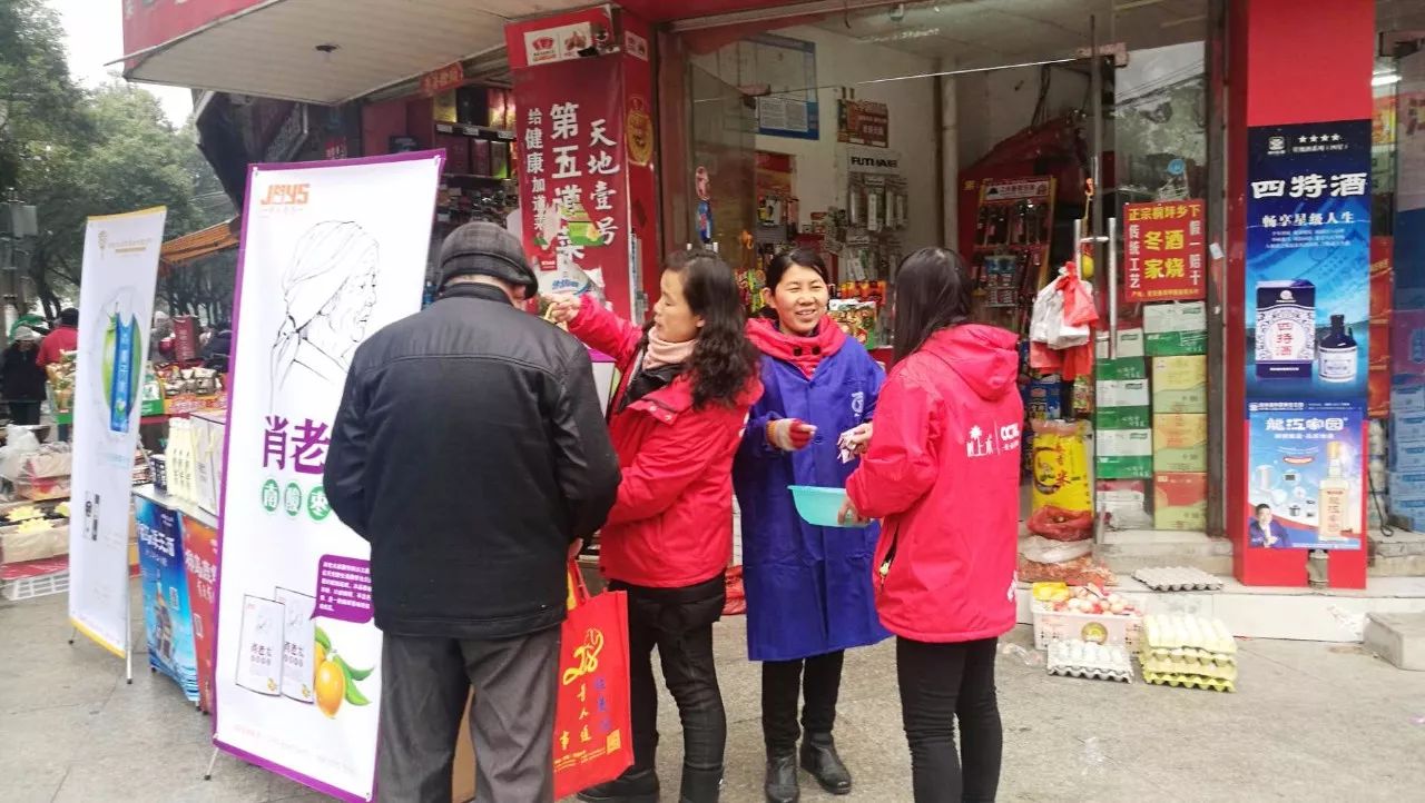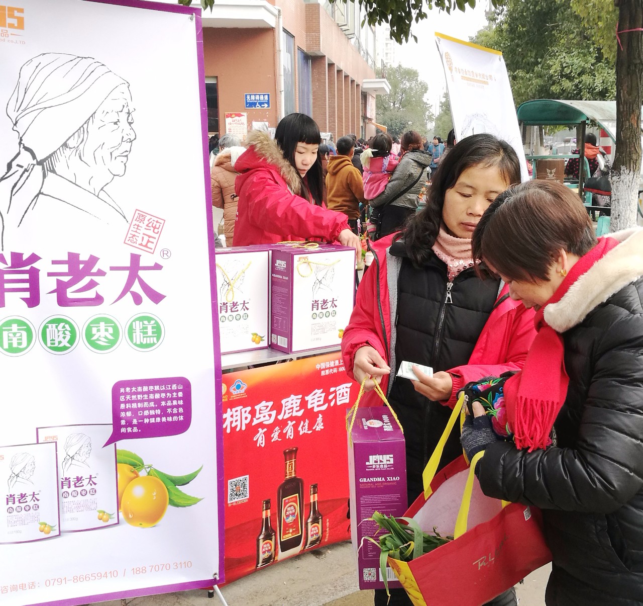 新春佳节来临之际,江西省吉安市,吉安片区吉州市场部团队在吉州区青石街菜市场、吉州区韶山路菜市场、吉州区东门菜市场持续开展海南自由岛实业有限公司品质新品圩镇推广活动,肖老太南酸枣糕等产品走进吉安消费者家庭,为欢度农历2017大年三十和喜迎2018新春的人们送上节日的良好祝愿。