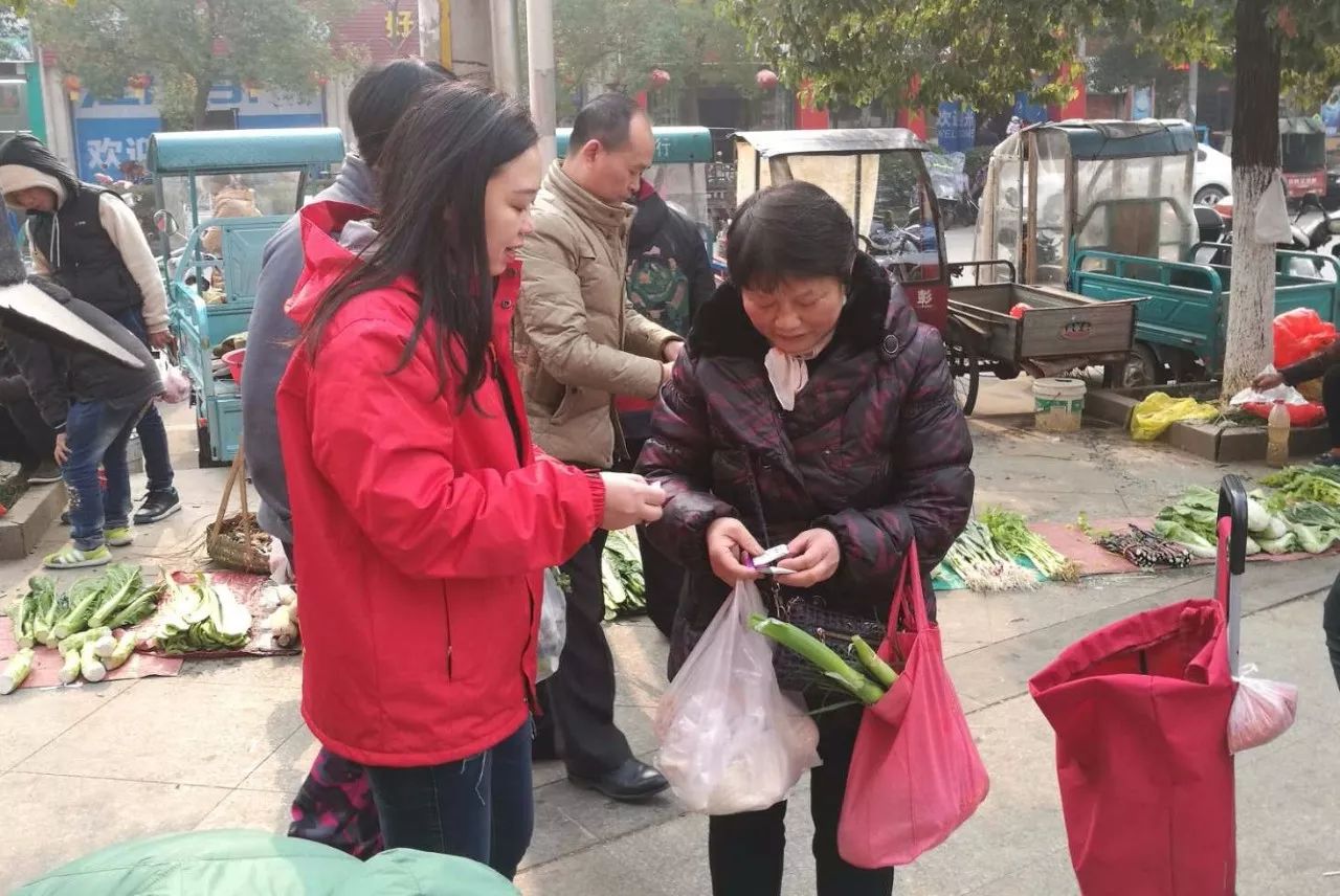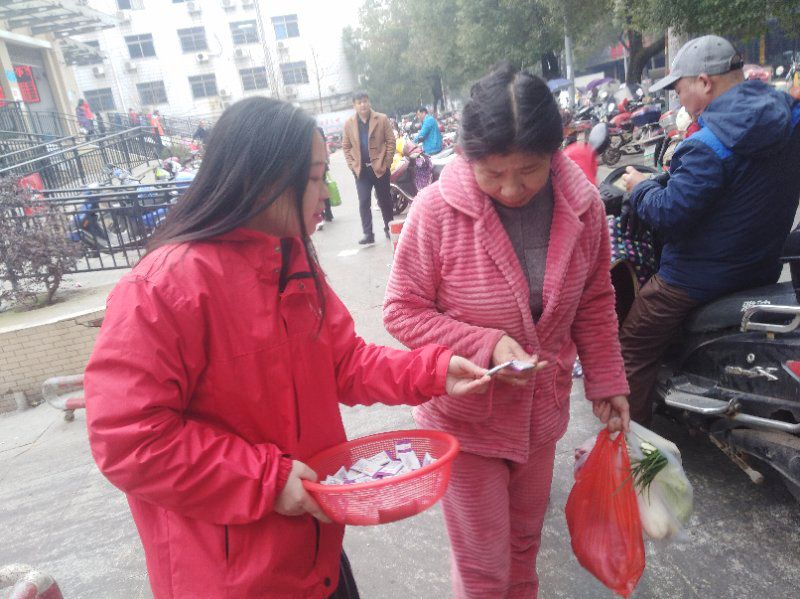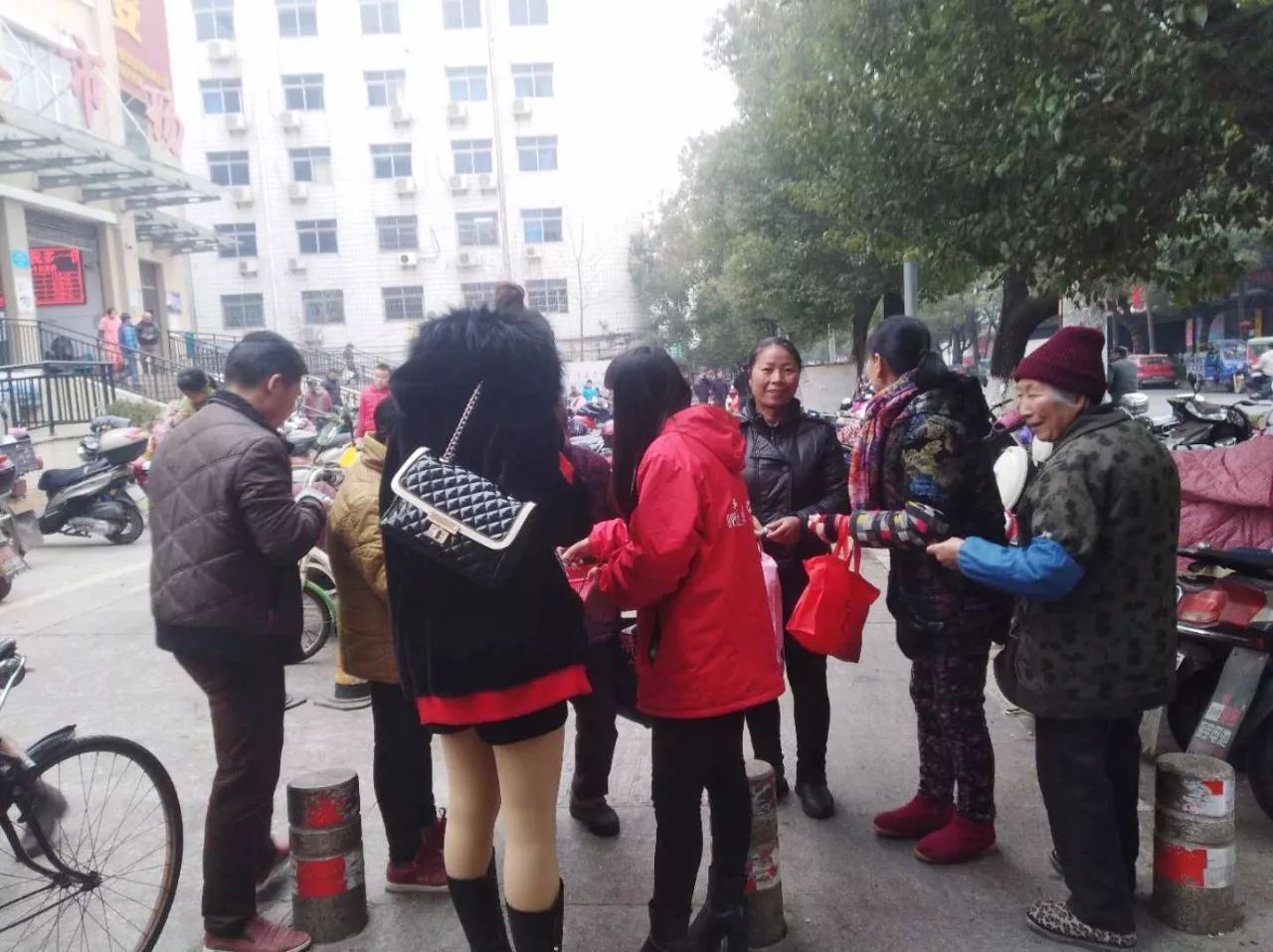 吉安片区经理郭雪花(左)一袭红红自由岛工装新衣,主动向路人推广自由岛品质新品。