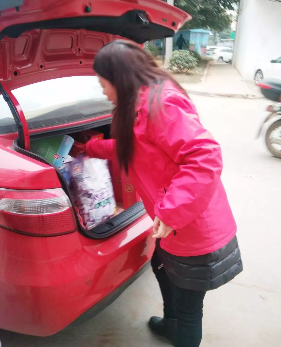 章贡市场部团队贴心服务,帮助消费者将购买好的肖老太南酸枣糕等产品放入汽车后备箱。