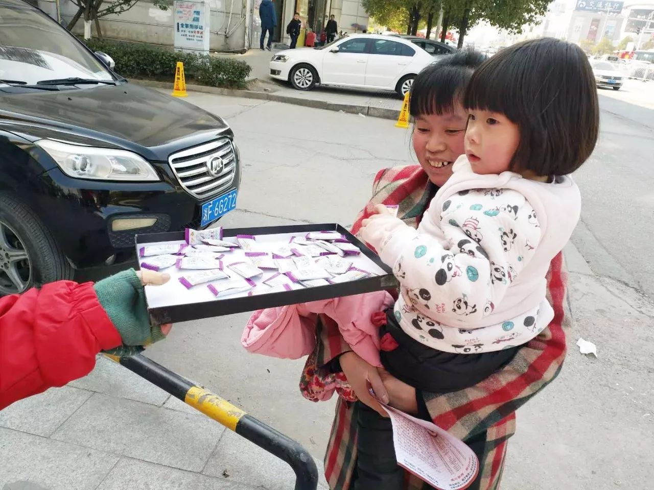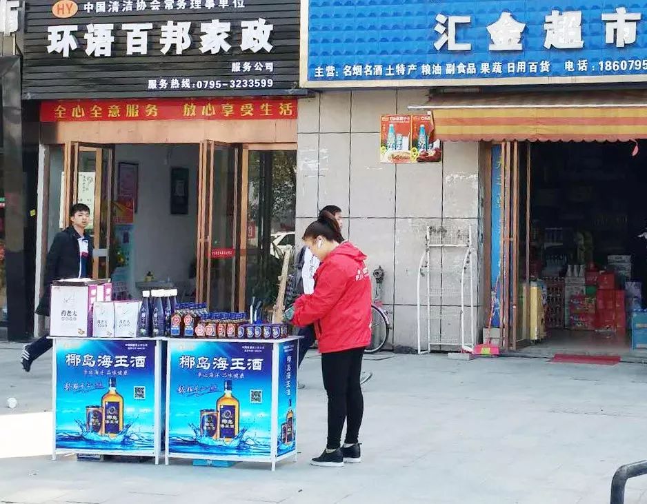 2018年2月7日,袁州市场部团队在宜春中学附近的副食店门口做圩镇活动推广。上图为:袁州业务员易春华。