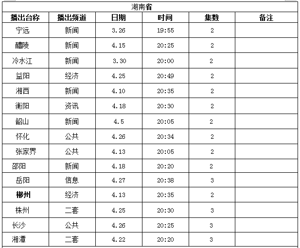 “自由岛,树上水,更纯净,更有味”随片广告语在湖南省各地市县电视台播出时间表