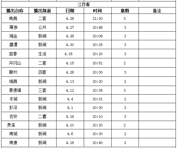 “自由岛,树上水,更纯净,更有味”随片广告语在江西省各地市县电视台播出时间表