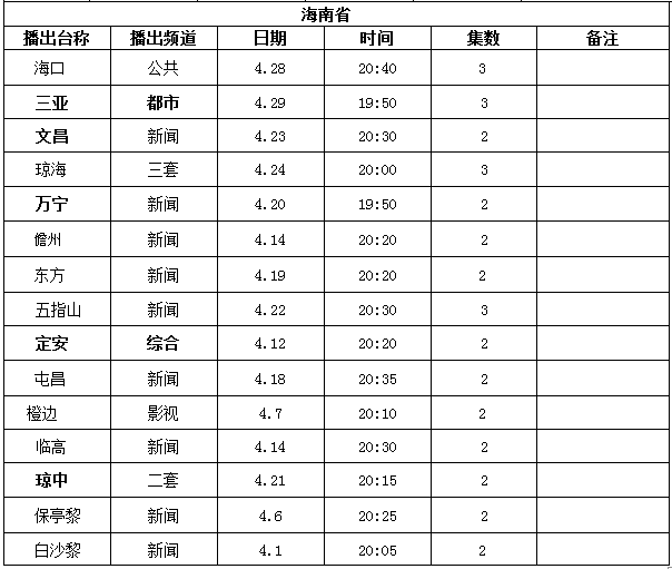“自由岛,树上水,更纯净,更有味”随片广告语在海南省各地市县电视台播出时间表