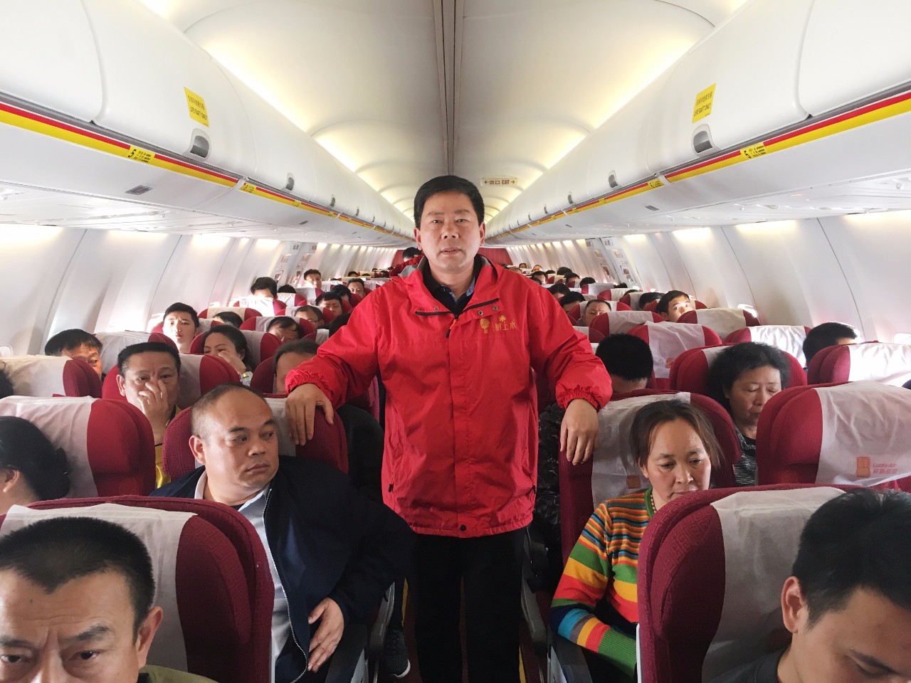 赣北大区总经理王富洋身着自由岛冬季(黄标)工装在飞机上惊艳亮相