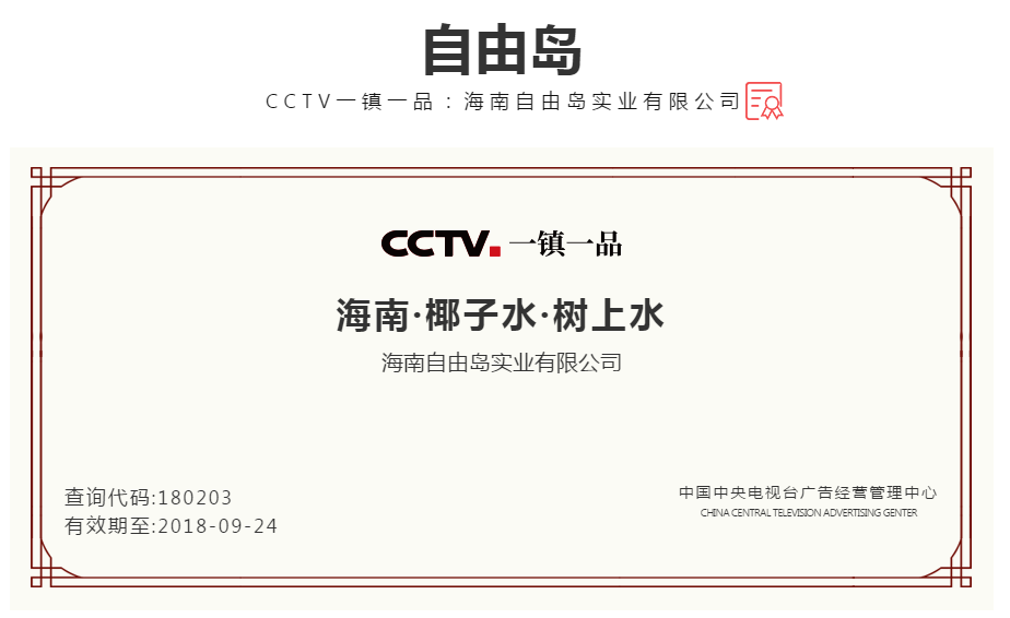 期待“CCTV一镇一品”海南自由岛实业有限公司企业专题片大放异彩!