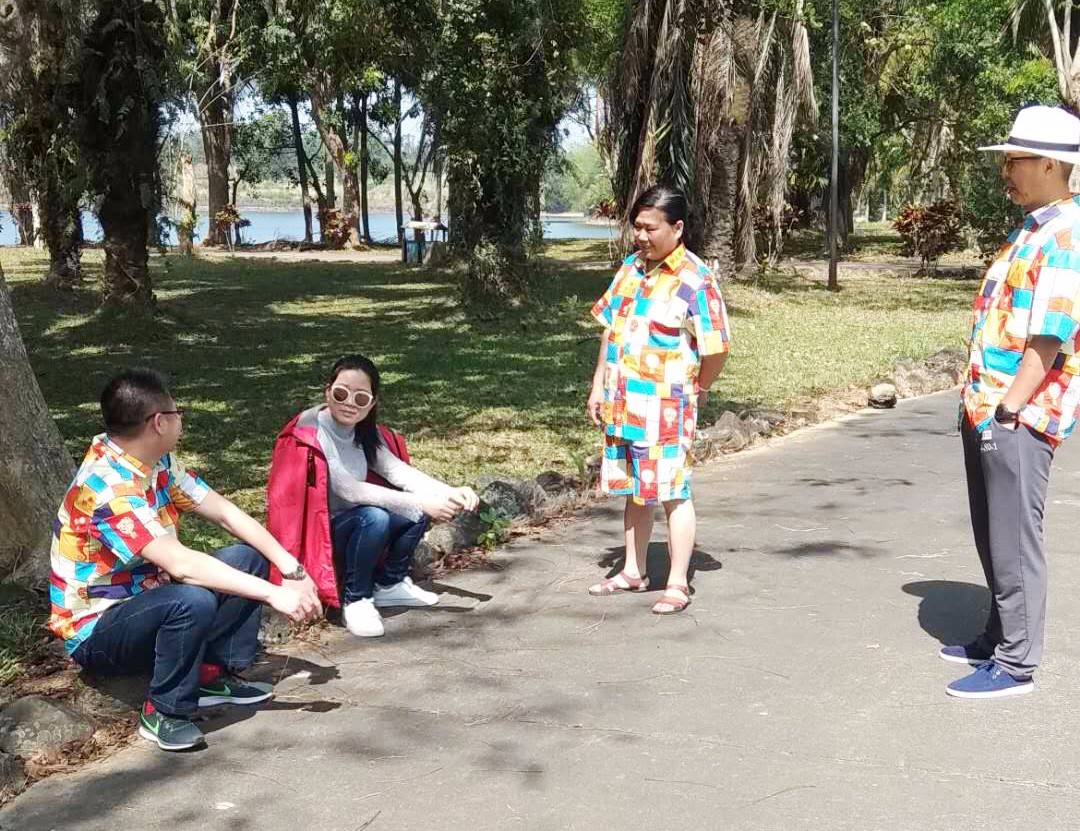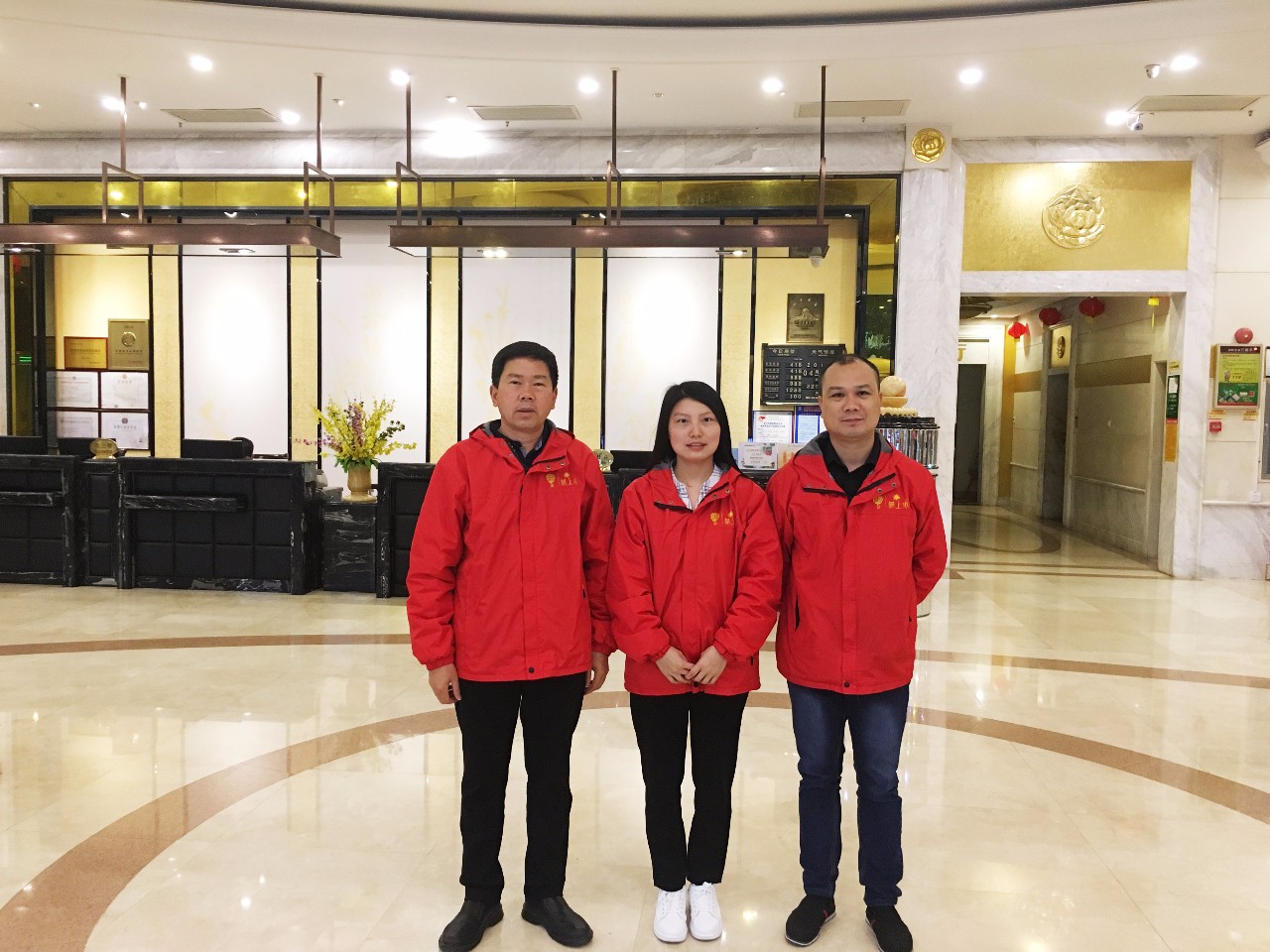 参与拍摄人员入住海口华天酒店(从左至右;肖志军、宋秀云、王富洋)