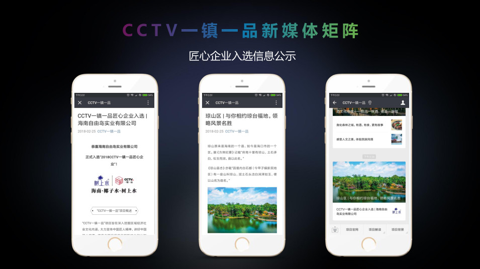CCTV一镇一品匠心企业海南自由岛实业有限公司广告在中央电视台中央新闻等终端移动应用上的展示