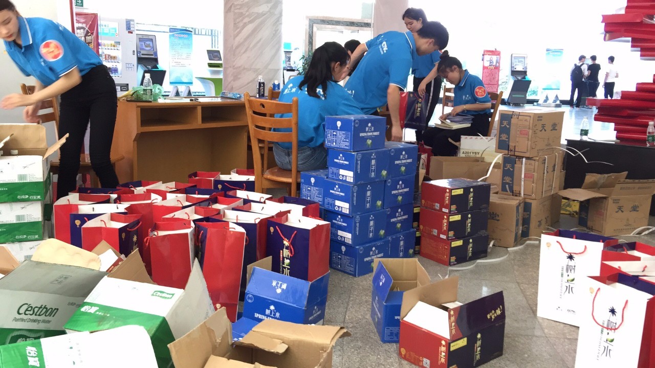 中国赣州中国梦·劳动美诗歌朗诵会的承办方为赣州市路开文化创意有限公司,路开文化同时也是海南自由岛实业有限公司企业文化建设团队。连续两届诗会,海南自由岛实业有限公司均作为主要赞助单位之一,助力这一在国内具有一定影响力的诗歌盛宴取得成功,自由岛形象与情怀也越来越广受赞誉!(图为自由岛志愿者团队在诗会开始前,现场分装由自由岛提供的树上水系列品质礼品)