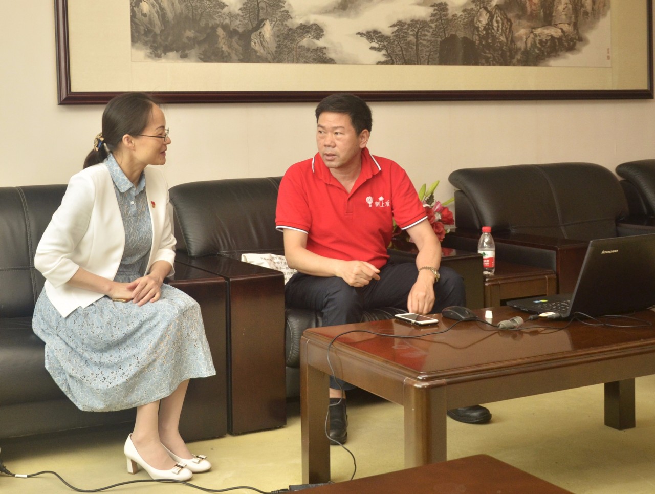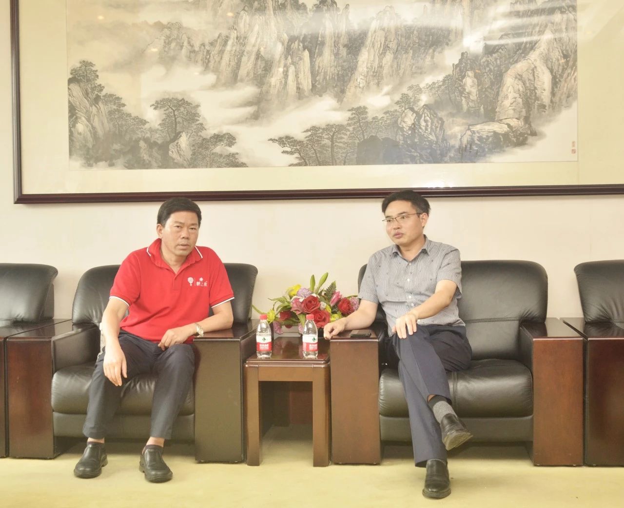 赣南师范大学党委、校长办公室副主任,校友会副秘书长陈晓晨(左)和肖志军先生沟通交流