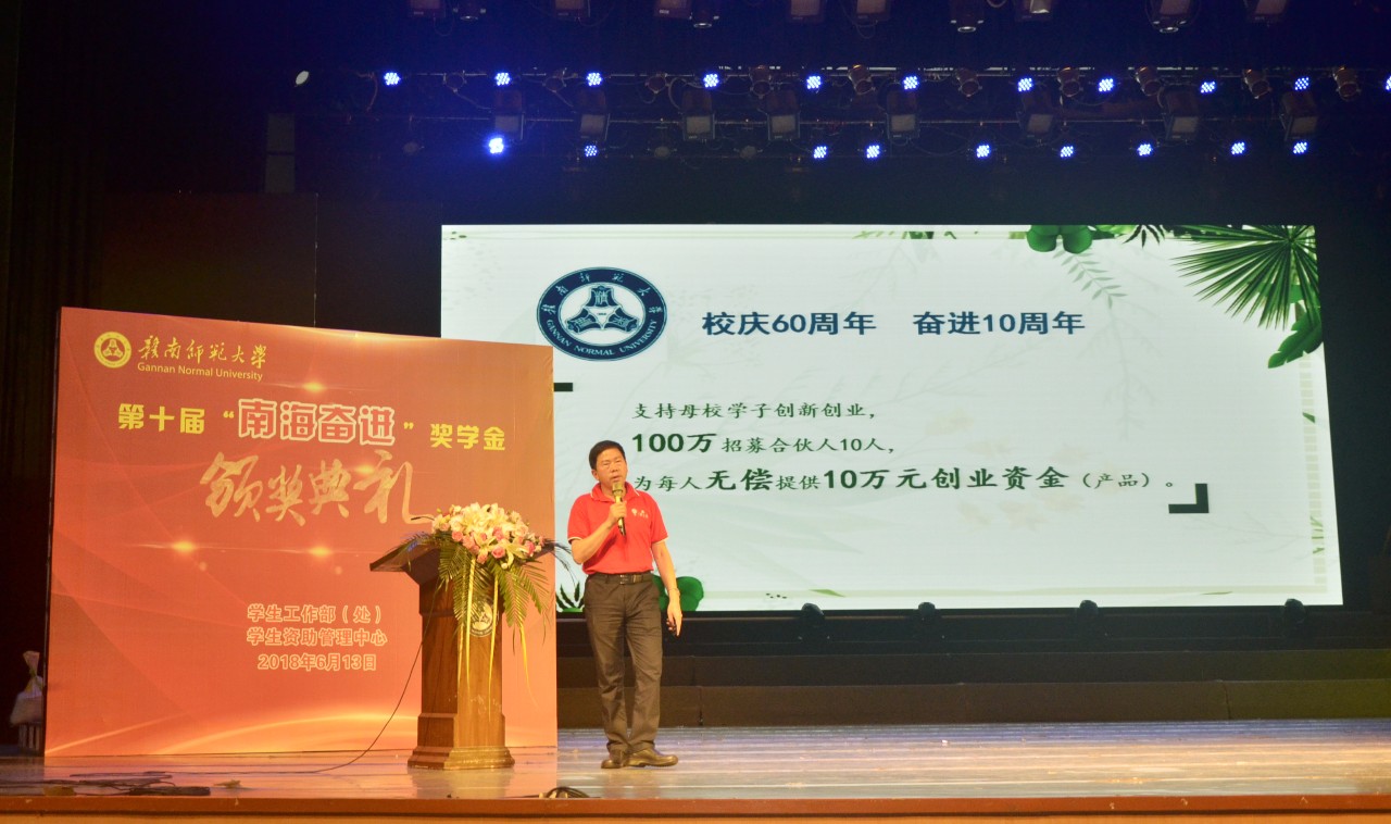 2018年6月13日,赣南师范大学第十届“南海奋进”奖学金颁奖典礼在赣南师范大学聂耳剧场举行。