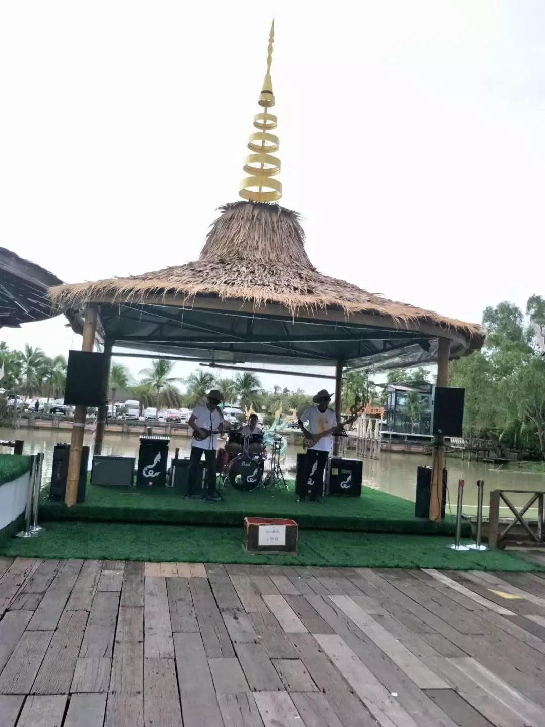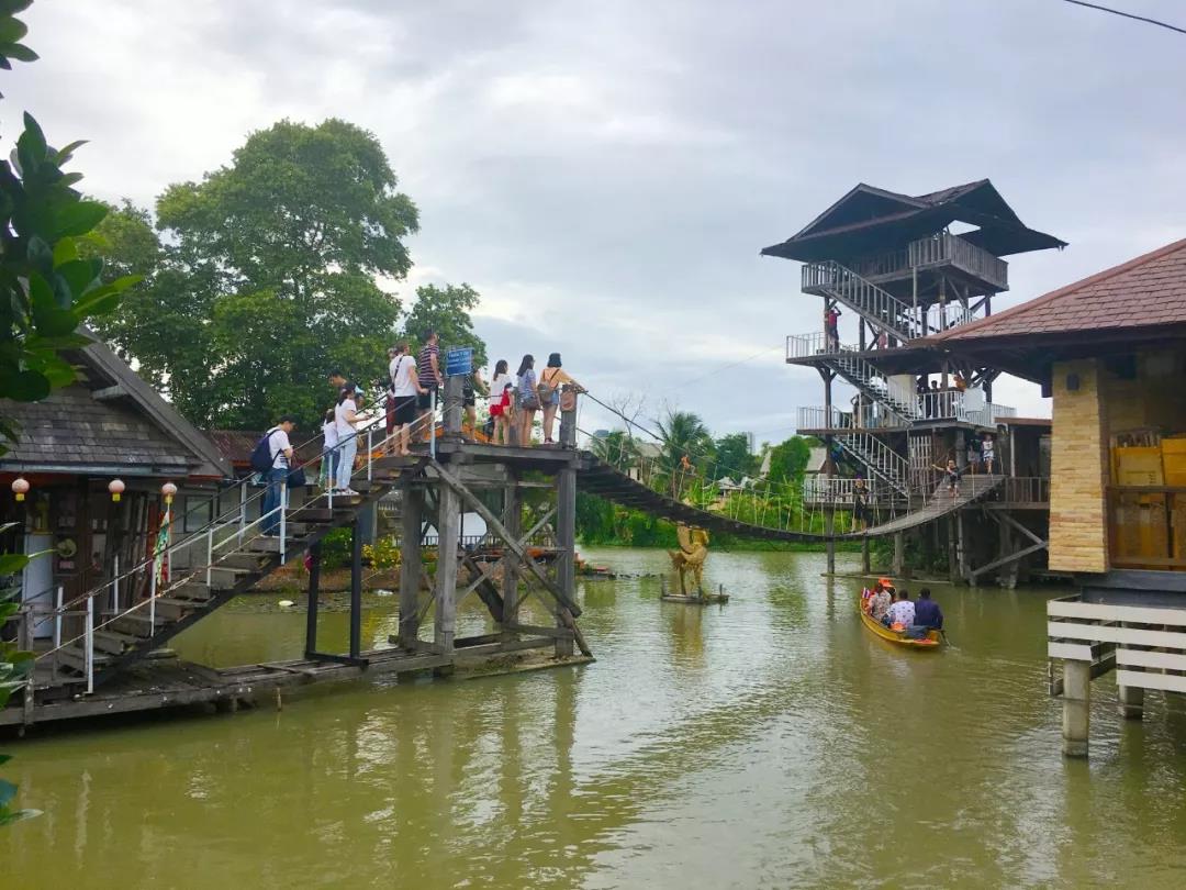 在水市里,既可以吃到来自泰国各地的风味小吃,也可以买到产自于泰国各地方的特产以及工艺品,更可以搭乘小木舟,在湖里荡漾,穿梭于桥亭之间;或是跑到湖中心最高处,坐上索道,飞驰下来,体验双脚掠过水面的刺激与凉意。