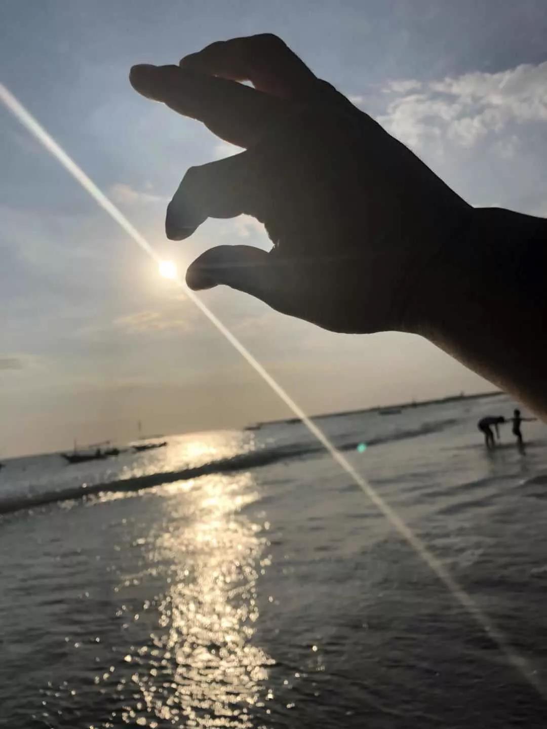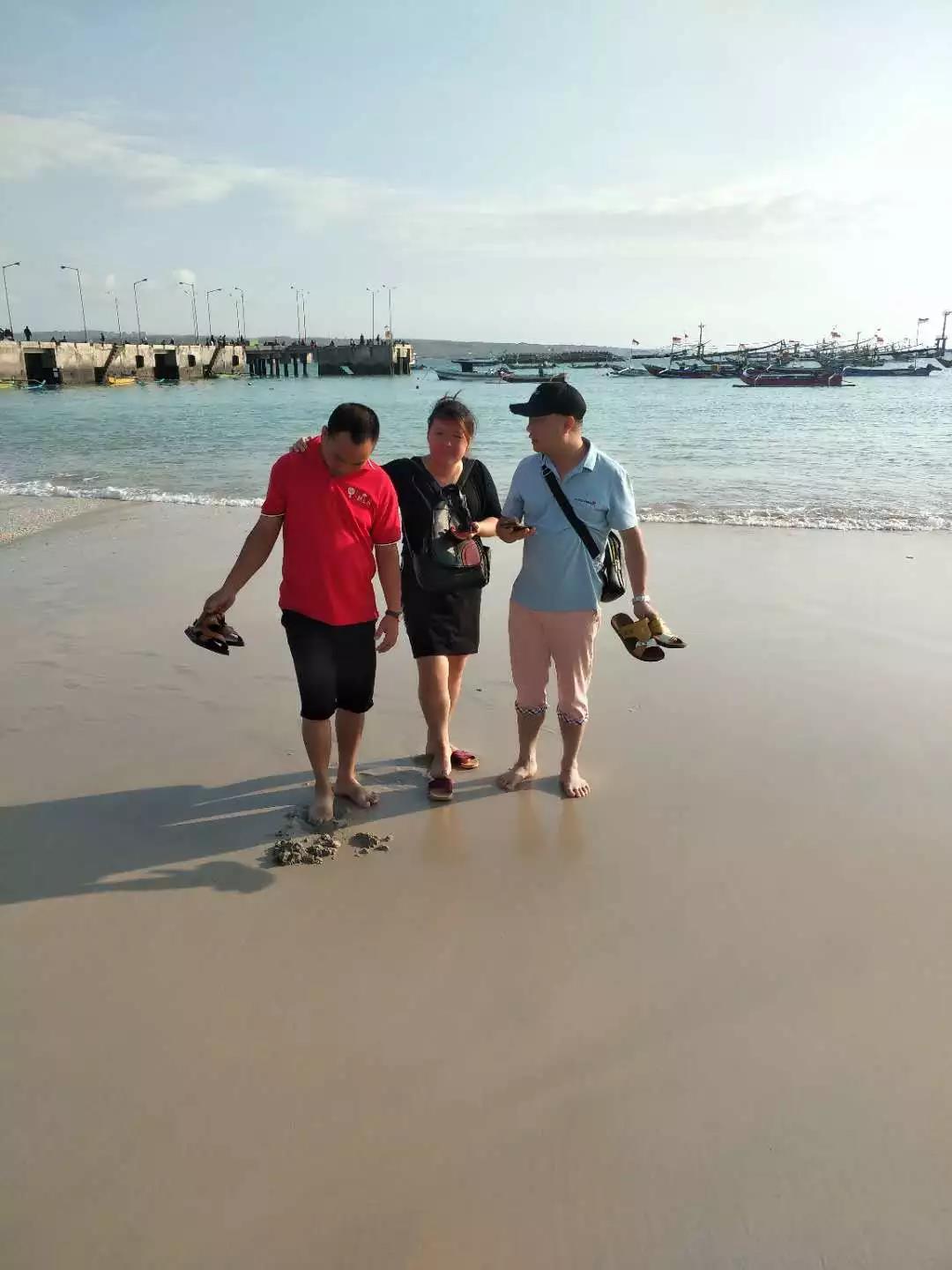 幸运之神眷恋着我们这些远方的游客,到达海滩时那太阳刚刚想往云层里钻,可能是看到我们的到来,它又故作停留,好让我们探究它的精髓之美。日落的余辉洒落在海滩上,整个海滩泛起金色,云儿也配合着不断变化着其优美的姿态,那真是美得令人晕眩。跳下车奋力冲往海边,摔掉鞋子,镜头追着太阳一阵猛“咔嚓”,然后再来一波摆个POS,把太阳和大海带回家。