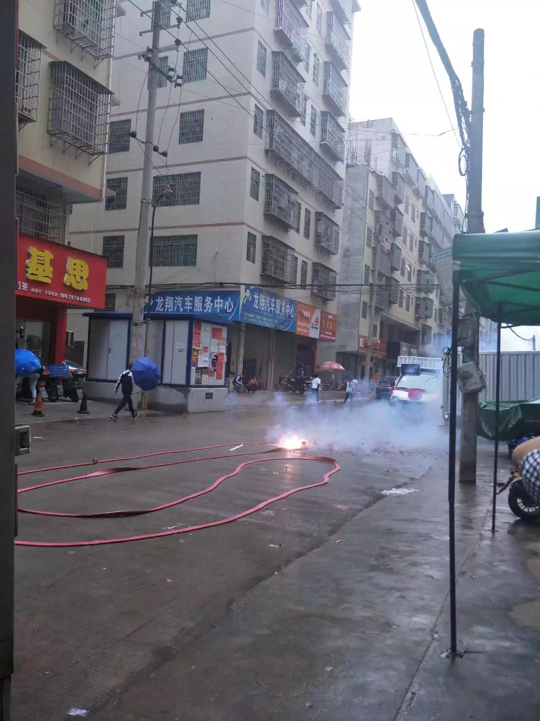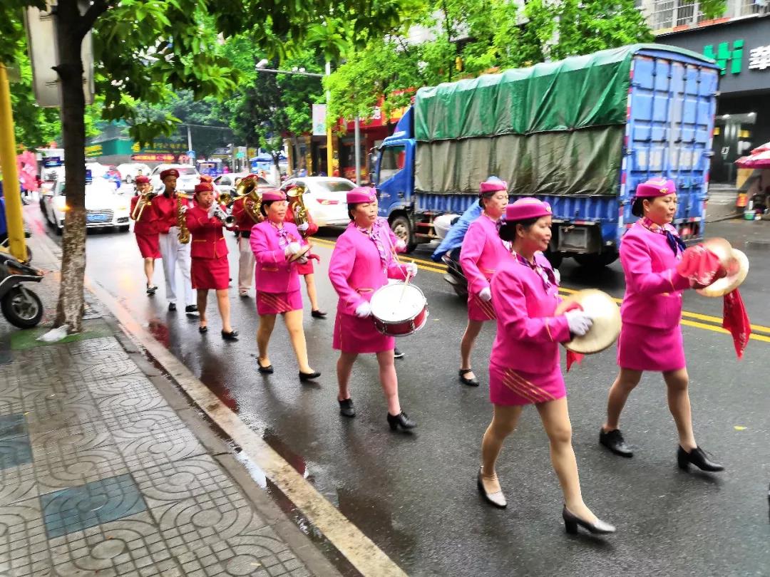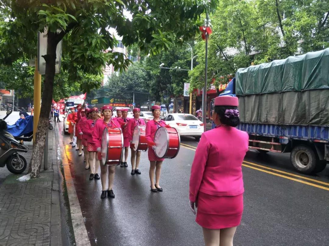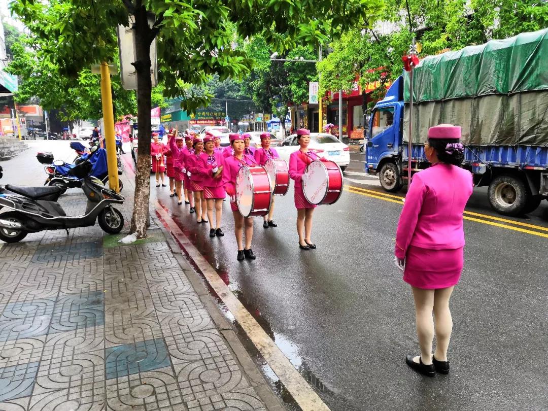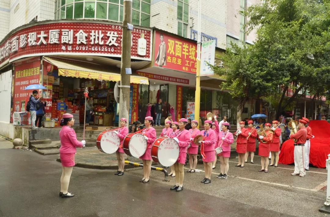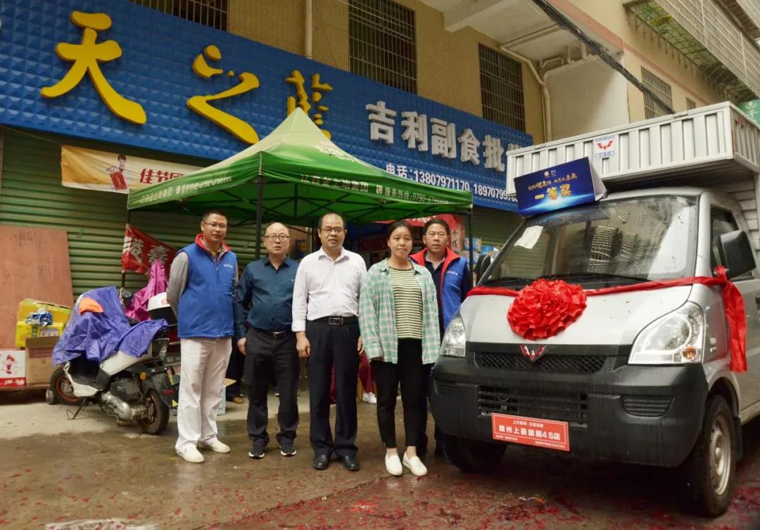 肖志军总经理带领全体送奖人员和喜乐队,沿着宝林大厦和泰康中路、东山北路,首先前往东山安置点,为一等奖获奖者吉利批发部罗燕送上爱车(五菱微型货车一辆)。