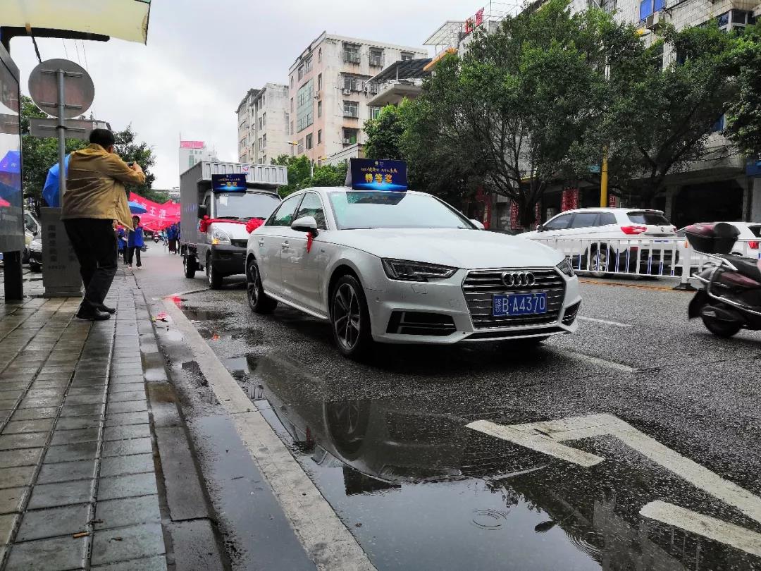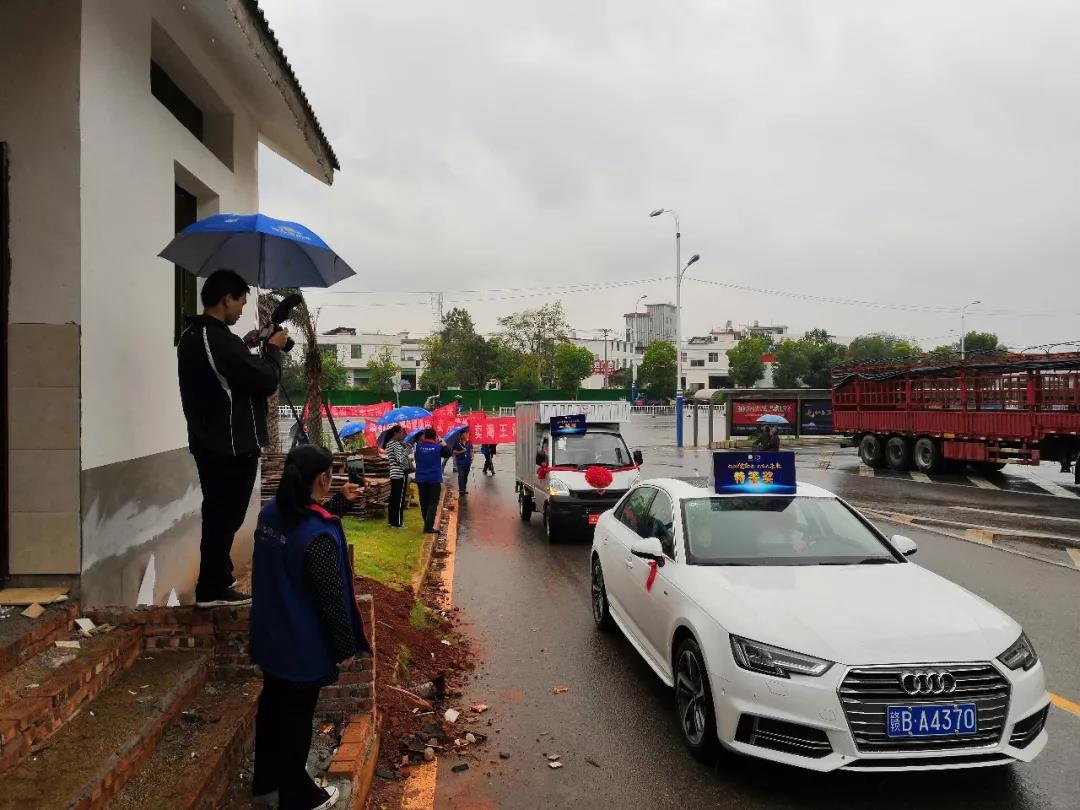 送车大军继续出发,途径南康三中,过水果市场和南康贸易广场,一路前往特等奖获得者——影视大厦批发部方萍女士处,为她送上爱车。