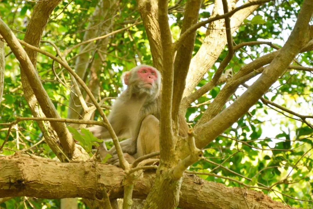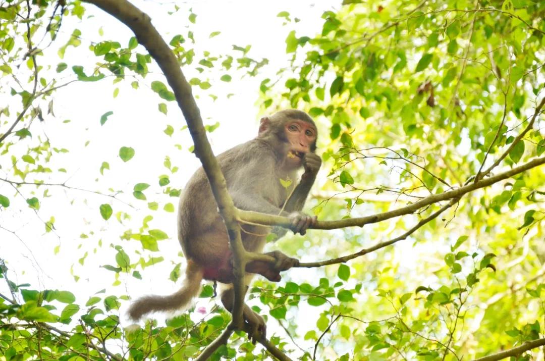 岛上的猴群,有几群已被驯化。你可以为它们拍照,也可和它们合影。观猴最佳时刻是管理人员喂食之时,哨笛一响,满山树摇草动,猕猴们有的连蹦带跳,有的在树上一连串腾跃秋千,一眨眼功夫便集合完毕,一边争吃,一边唧唧咕咕地打闹,千姿百态。