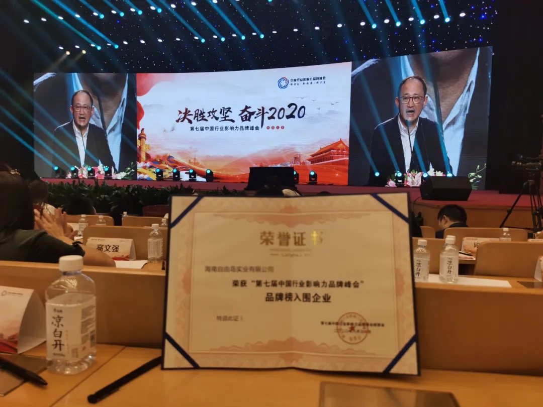 海南自由岛实业有限公司荣获第七届中国行业影响力品牌峰会饮料行业“品牌榜入围企业”