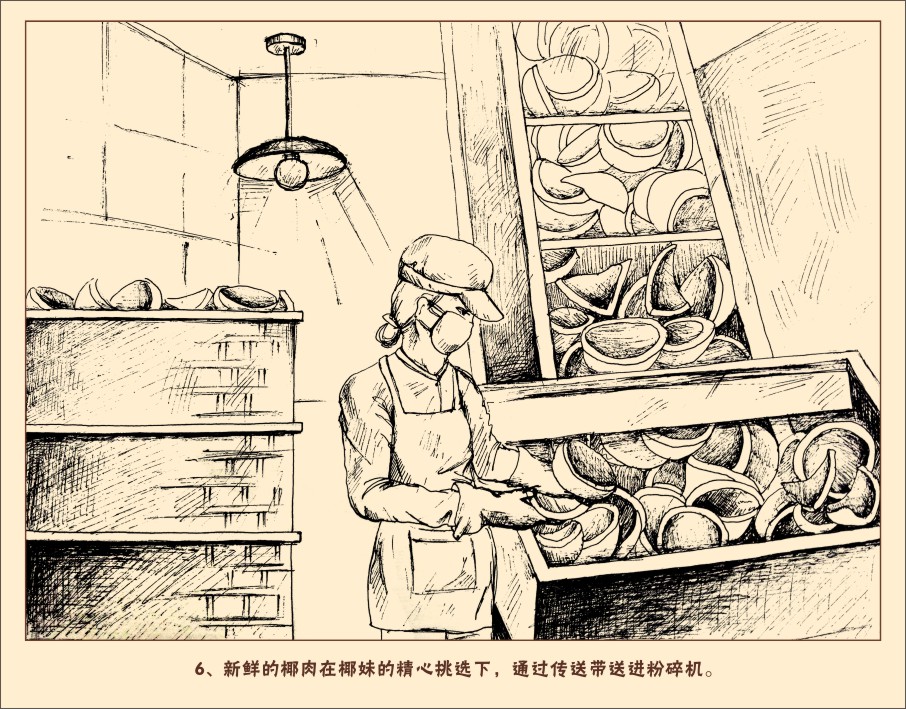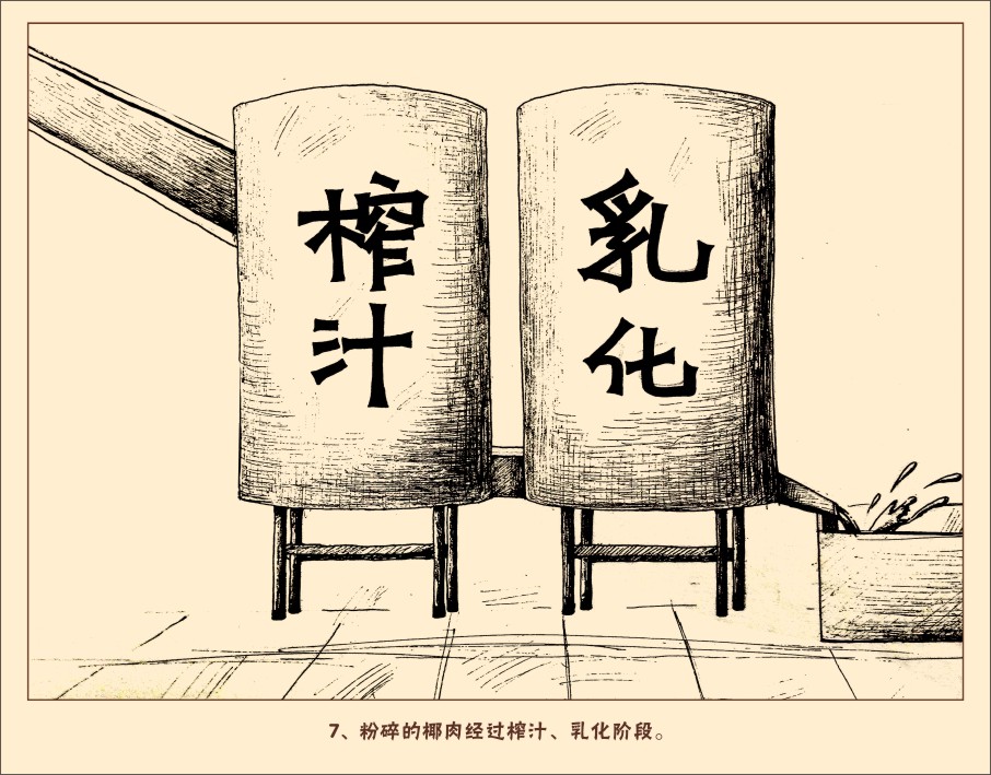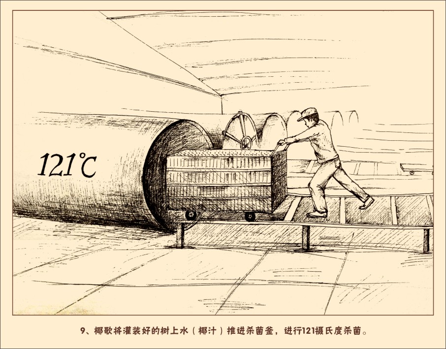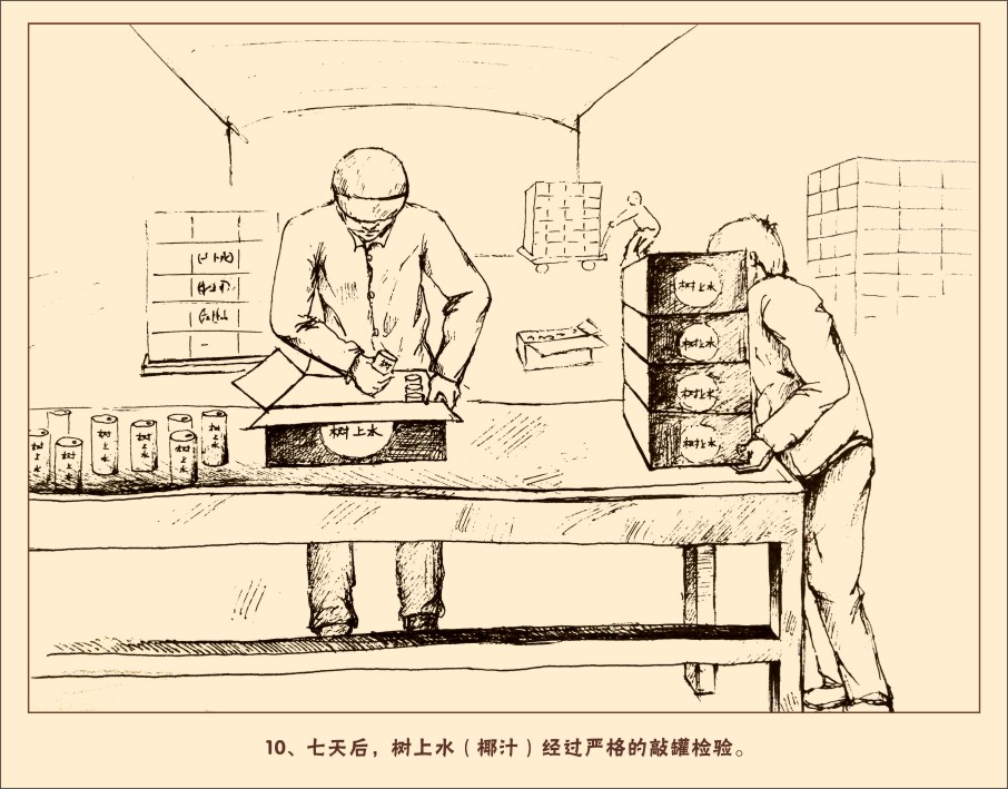 想象一下,一棵椰子树小苗,成长为能结椰子果的椰子树,大概需要6年左右时间。漫长的时间、一层层的植物过滤,椰子的果肉与汁液该是多么的纯净!这真是上天的赐予。用这样鲜采的生椰肉榨汁、121度高温灭菌、不添加任何香精、色素、糖精、防腐剂,它就是“树上水”椰子汁,更纯净,更有味!