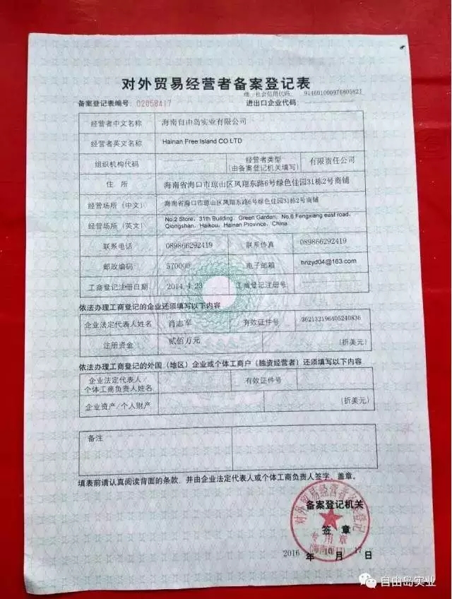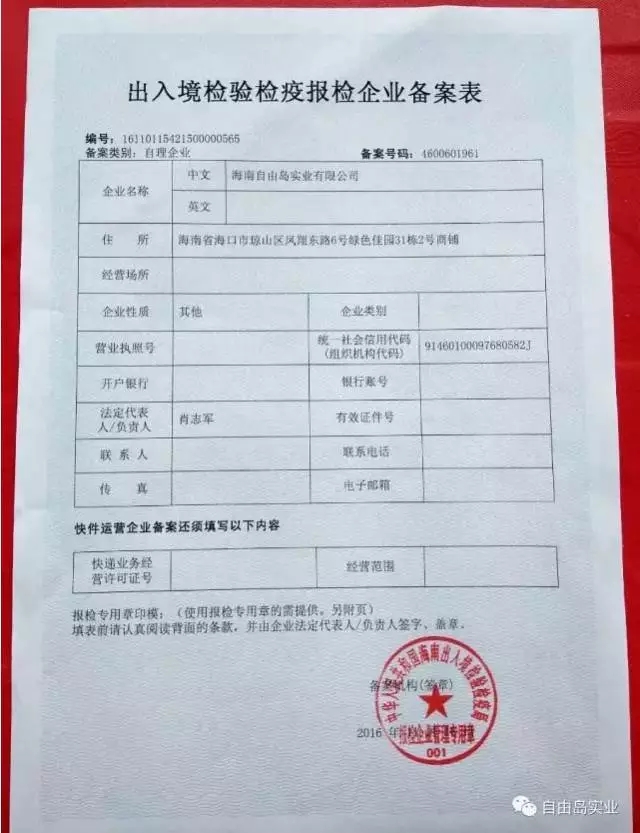三、2016年9月下旬,海南自由岛实业有限公司抓紧着手办理进出口贸易的各项证件,共涉及商务厅、海关、检验检疫局、外汇管理局、工商局、电子口岸等六家单位七个部门,于12月12号完成了所有资质的验审和办理工作。