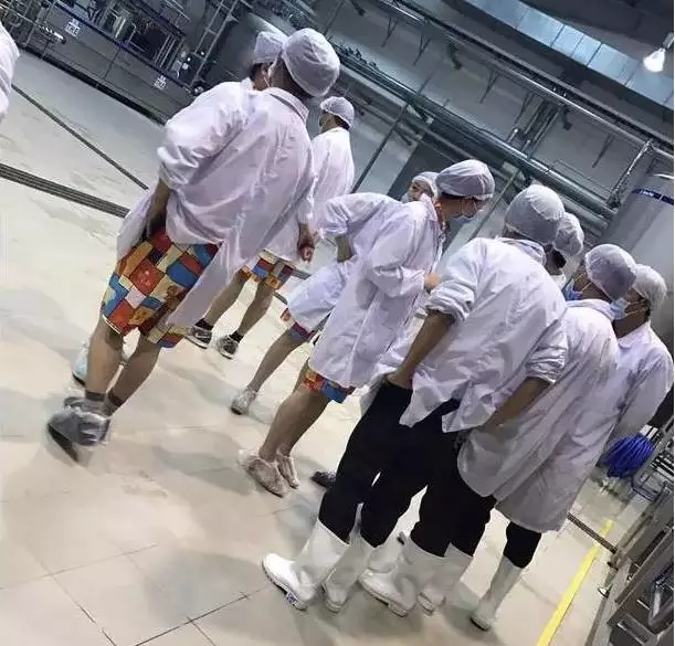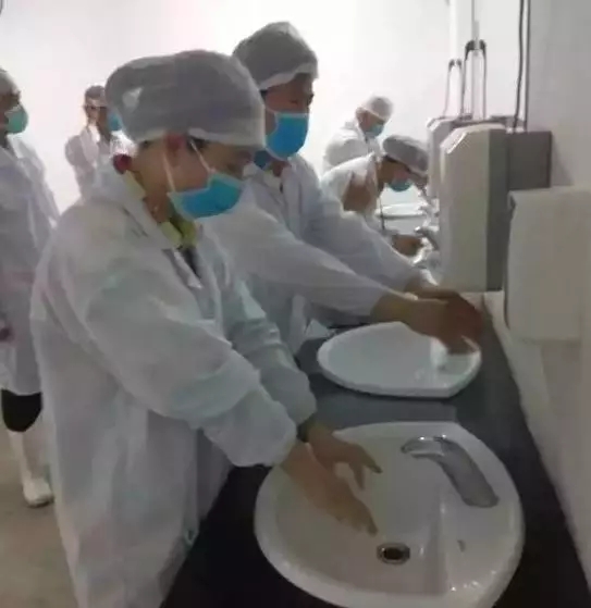 进入全封闭生产车间必须洗手消毒,穿防菌衣,戴专用防护帽、口罩和套上鞋套。