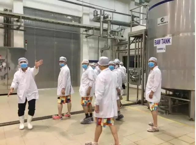 四、2017年6月4日,海南自由岛实业有限公司树上水•椰子水越南工厂实地考察团一行十人抵达越南,6月5日上午抵达越南TTC集团旗下生产工厂Betrimex公司,参观了工厂粗加工车间、全封闭生产车间和树上水•椰子水成品库。通过本次考察,了解了越南丰富的椰子资源和Betrimex公司严格的生产管理流程,每个人进厂前必须接受体检、进入生产车间必须洗手消毒、穿防菌衣、戴专用防护帽、口罩、鞋套。严格的管理制度,为树上水•椰子水的品质提供了有力保障。