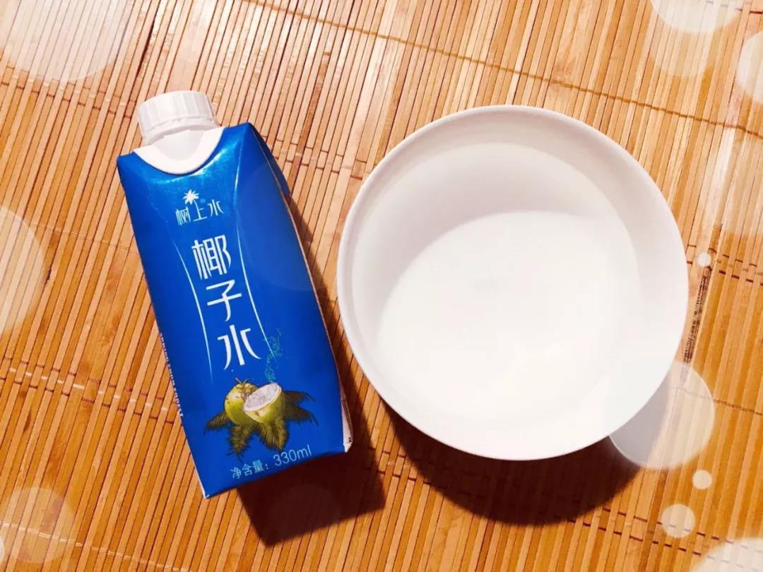 ⒊330ml树上水·椰子水三瓶。椰子水中含有丰富的营养物质,椰子水蛋白质中的精氨酸、丙氨酸、胱氨酸和丝氨酸的含量比牛奶还高。