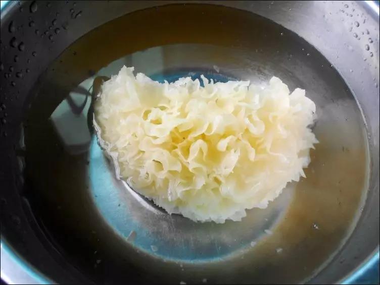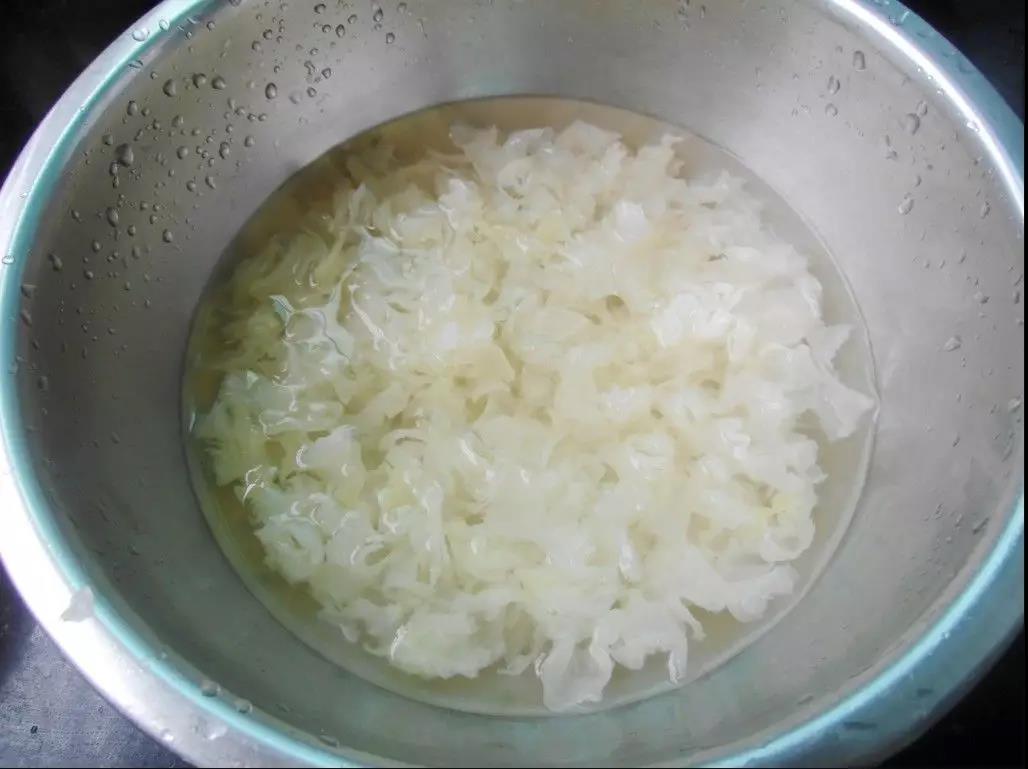 ⒉ 将浸泡好的雪耳撕成小朵,洗净去杂质。