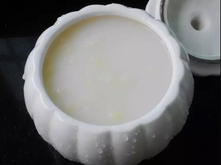⒊雪耳和冰糖放入炖盅,加入鲜牛奶。