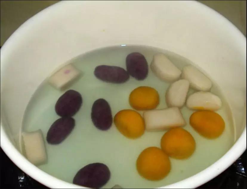 ⒈ 把红薯、南瓜、芋头洗净,蒸熟。