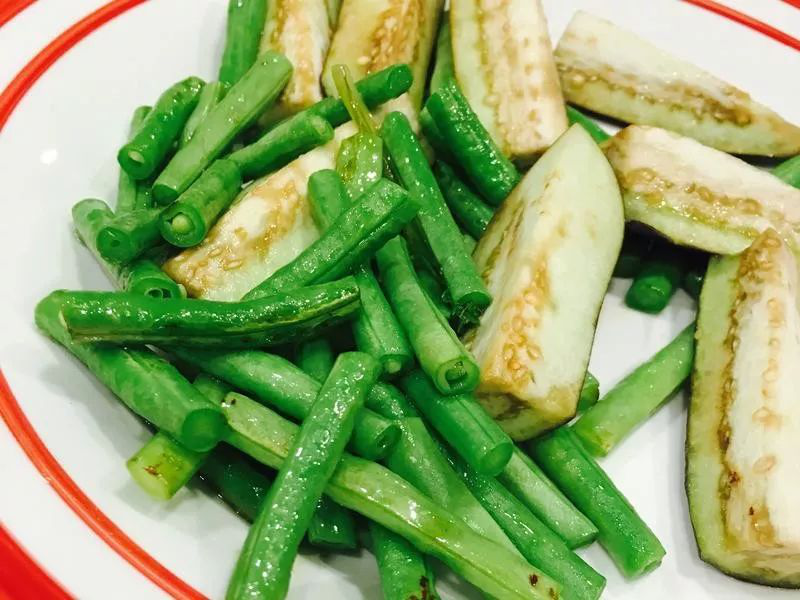 ⒈烧热油锅,放入蔬菜炒至半熟,捞起。